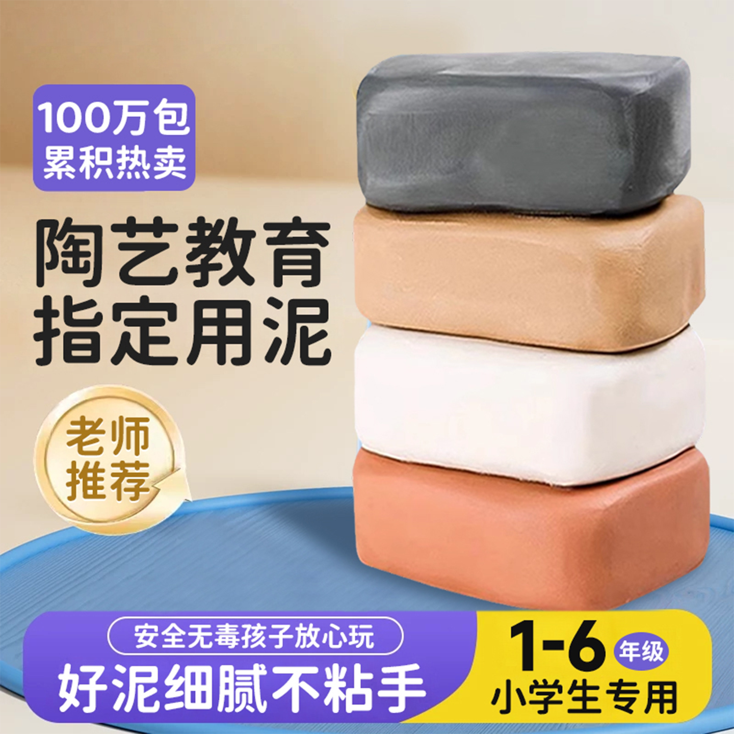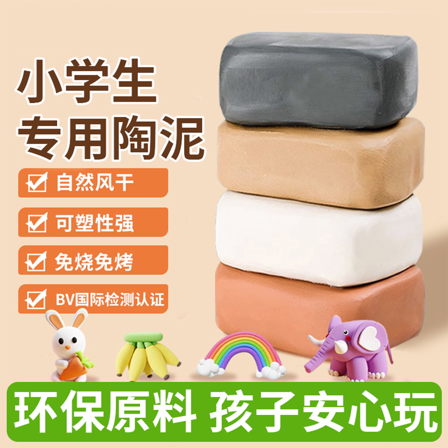 陶泥风干免烤无毒无味儿童小学生专用美术DIY手工陶艺粘土套餐