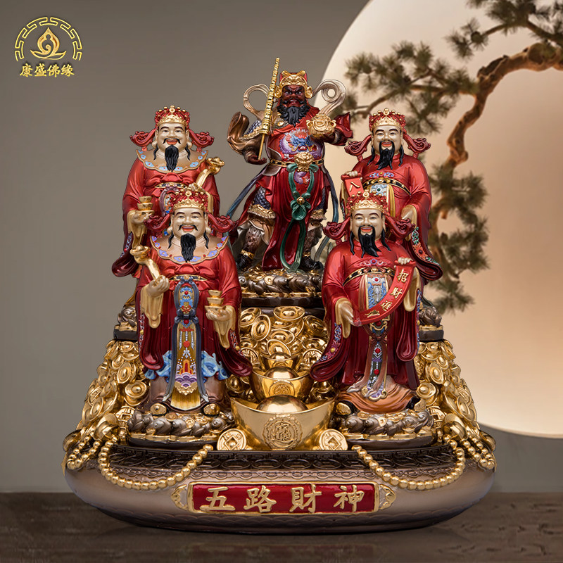 五路财神爷像武财神赵公明比干文财神像聚宝盆珐琅彩黄铜摆件家用