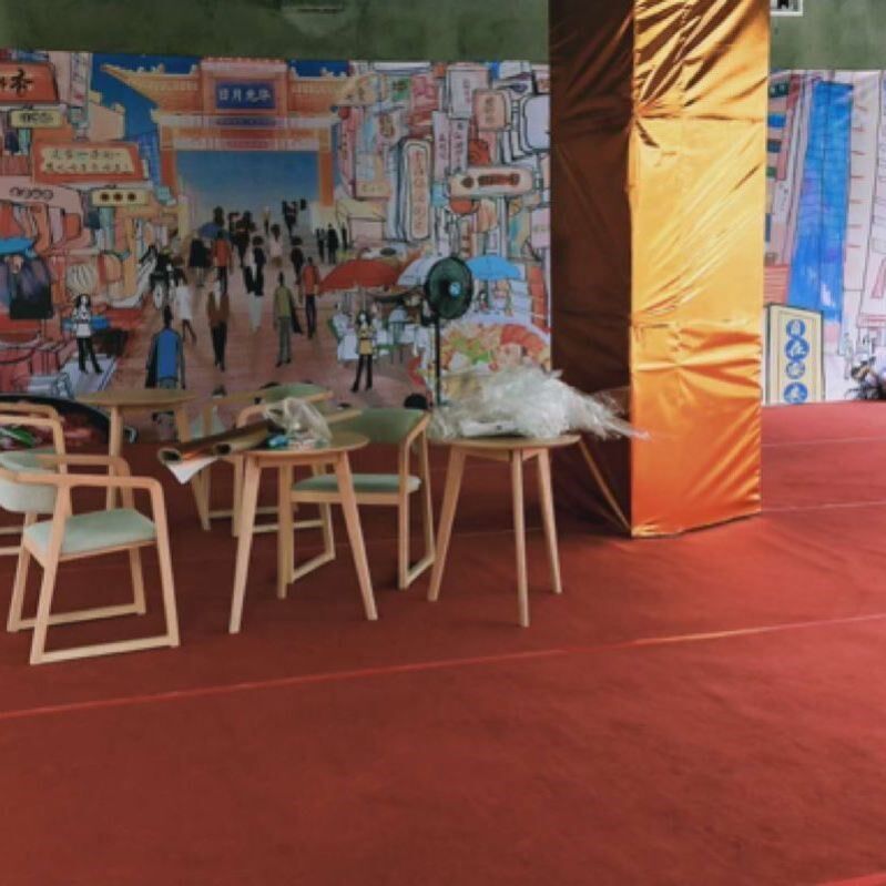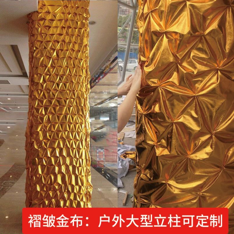 舞台金布树木装饰金纸包树皱金布树干金色包柱子金箔纸缠树红色布