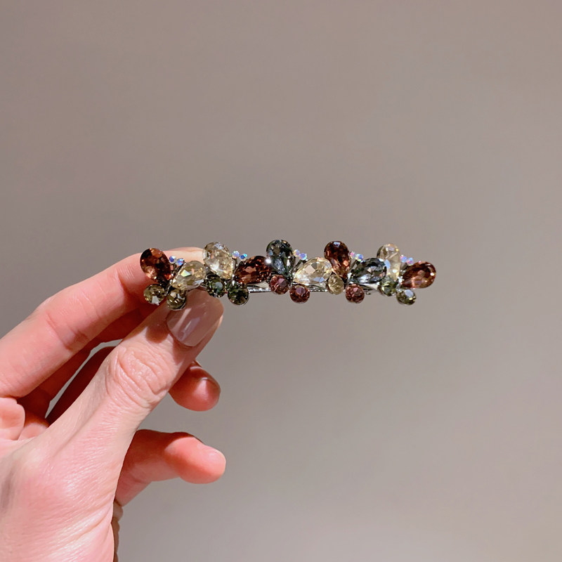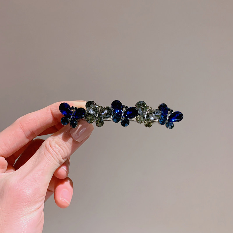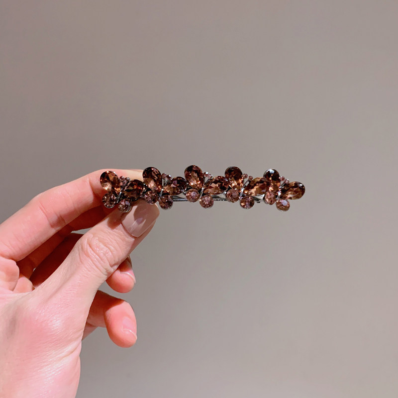 日韩水钻蝴蝶发夹头饰奢华气质弹簧夹后脑勺顶夹发卡妈妈复古横夹