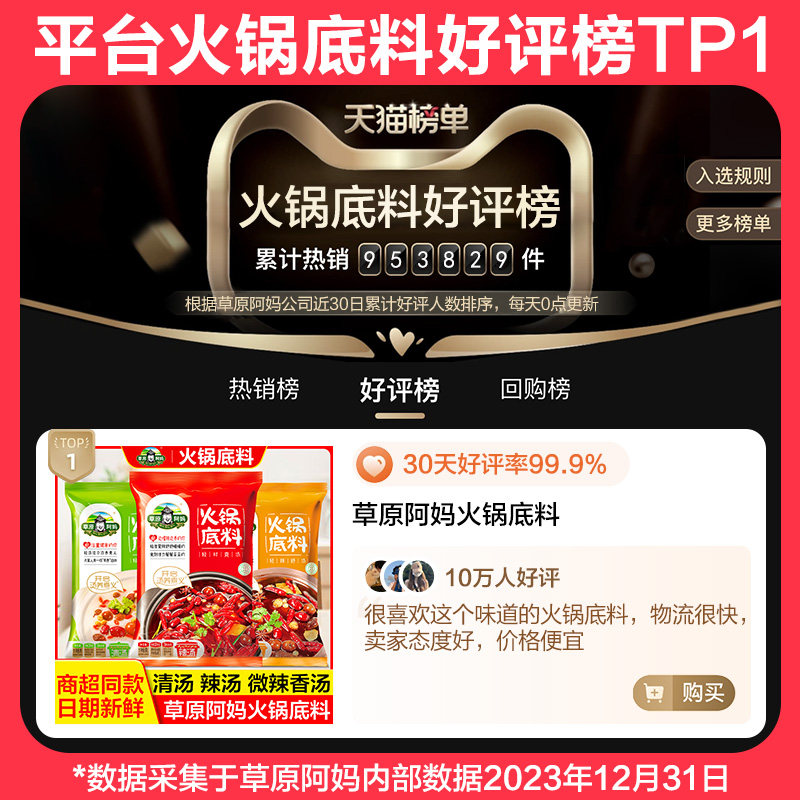 草原阿妈火锅底料家用调味料198g番茄骨汤清汤微辣香汤麻辣烫底料