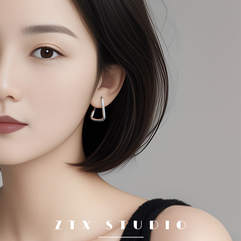 银色简约几何无耳洞耳饰小众气质设计感耳夹女款无痛隐形耳环夹款