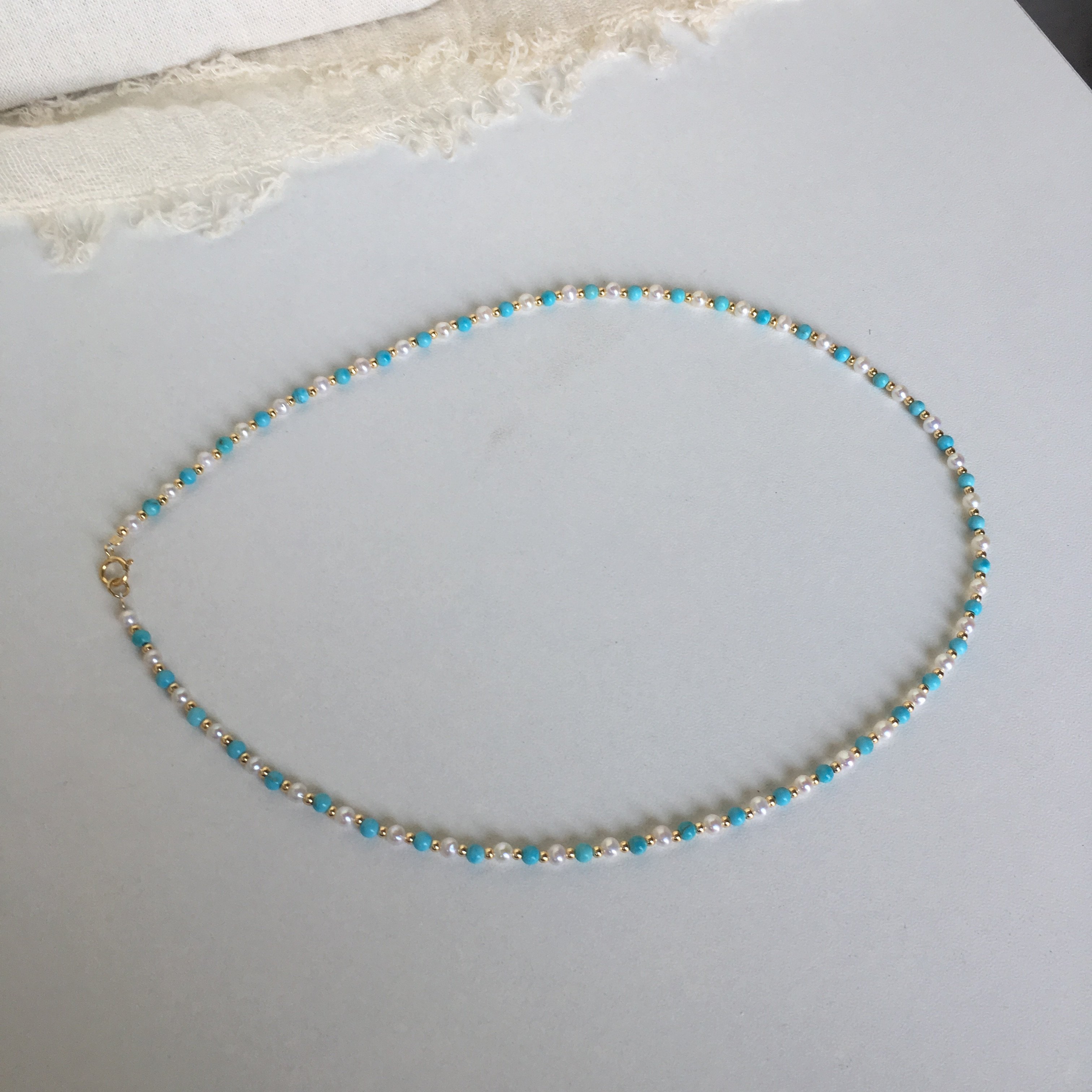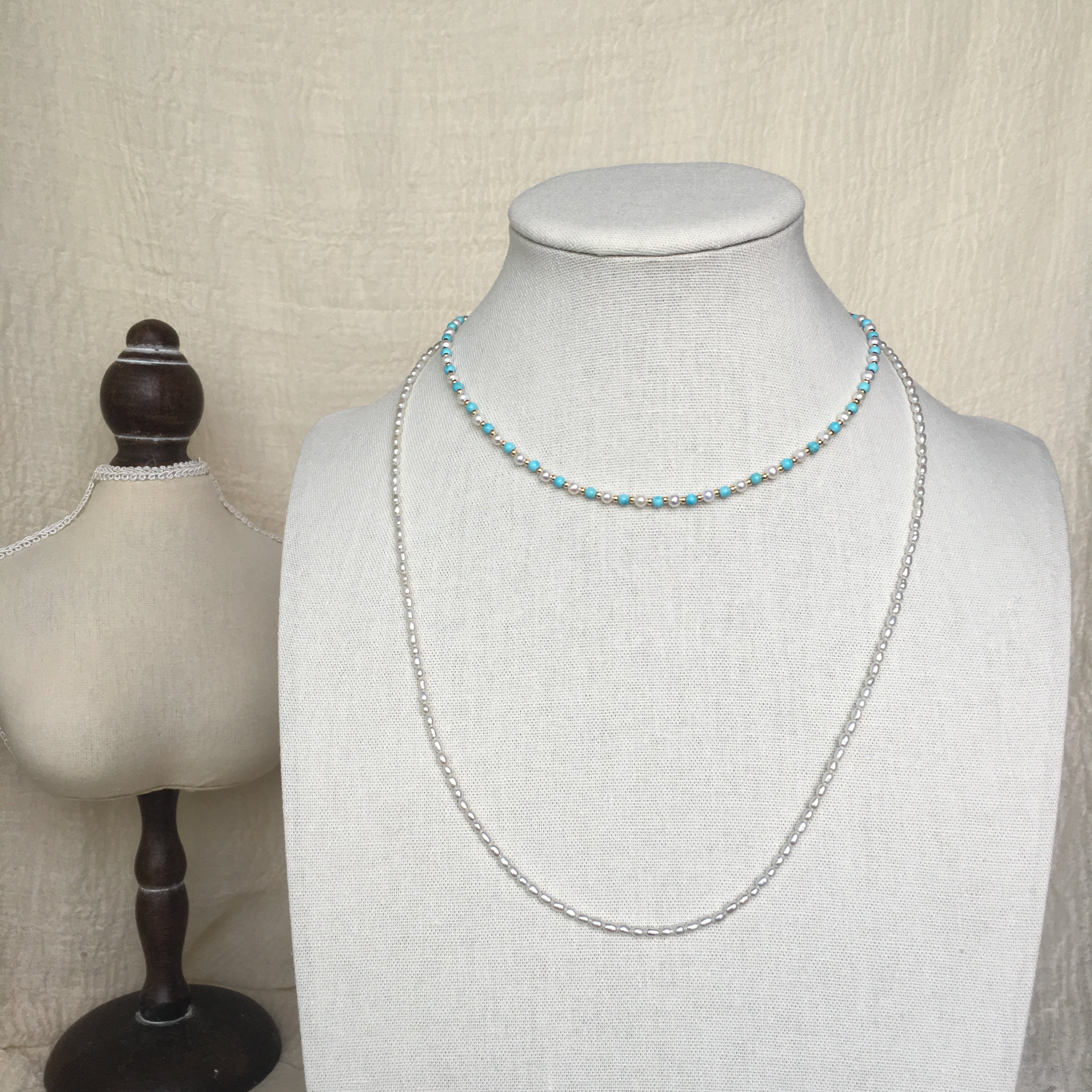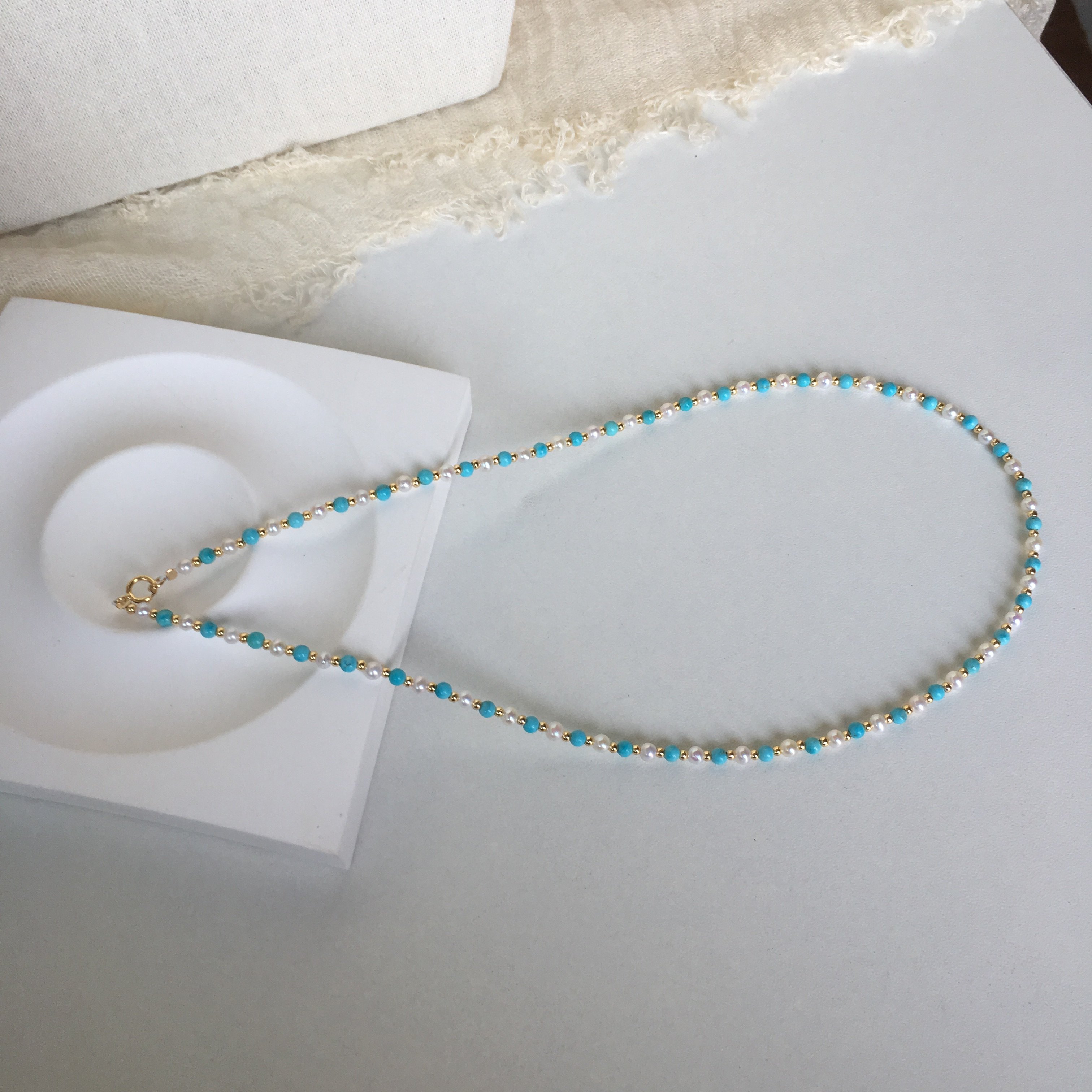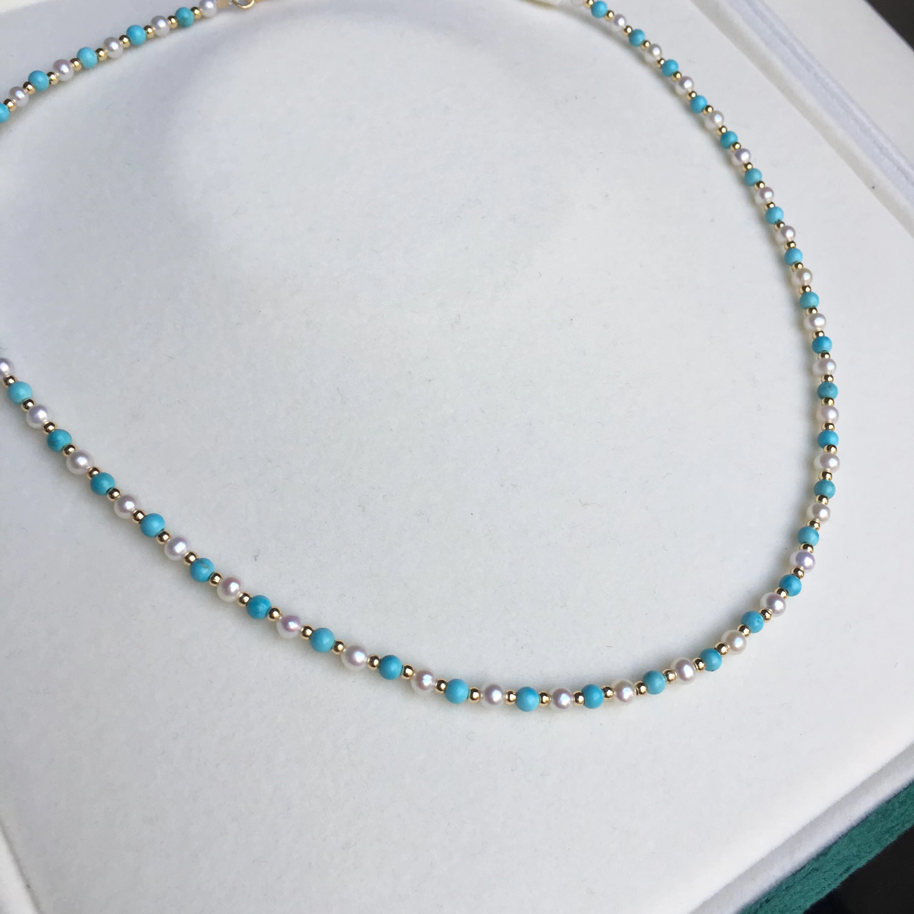 天然珍珠小米珠链绿松石混搭锁骨链小众叠戴精致珍珠混搭项链女