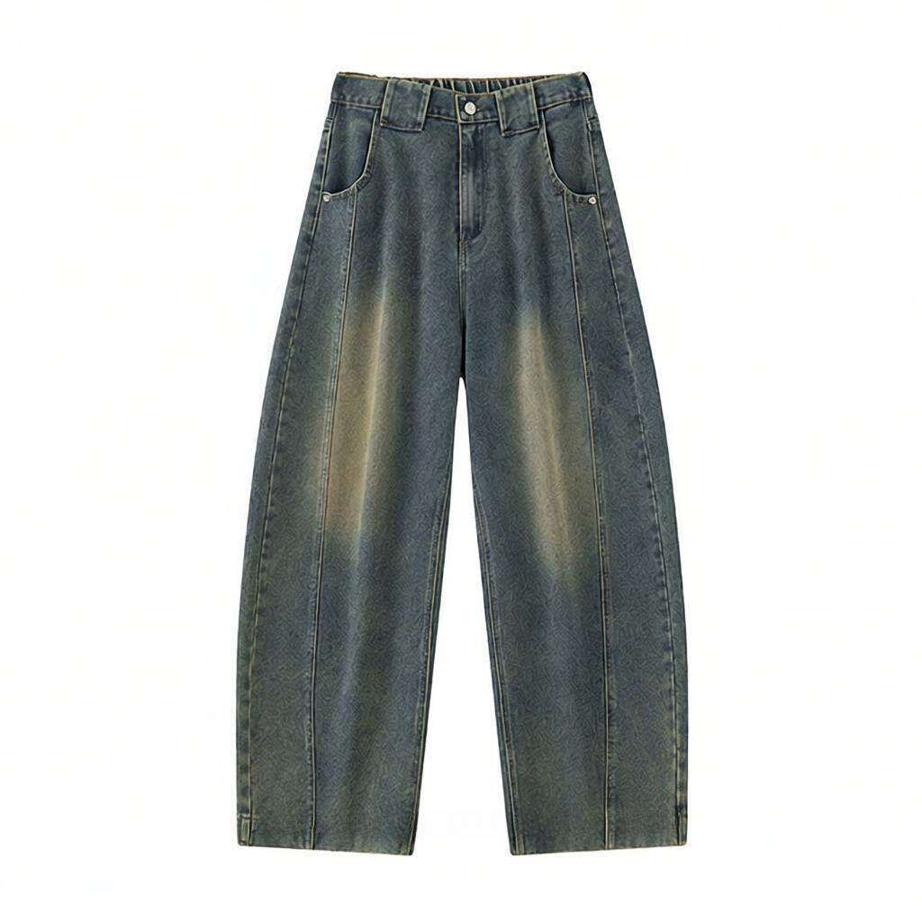 胖mm复古牛仔裤男直筒宽松阔腿美式高街裤子潮牌痞帅休闲长裤