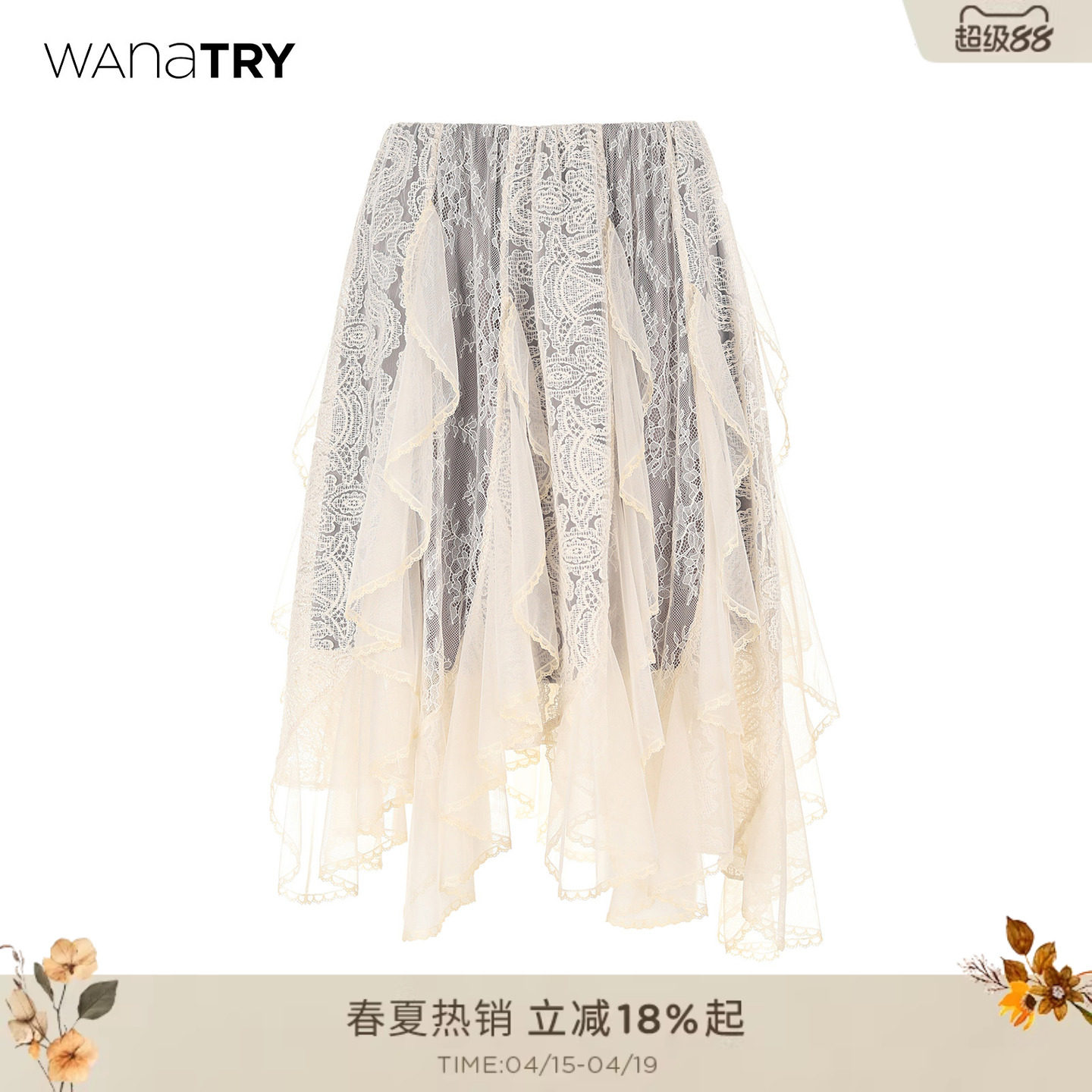 wana try蕾丝拼接网纱不规则多层次仙女半裙2026春季新款时髦女裙