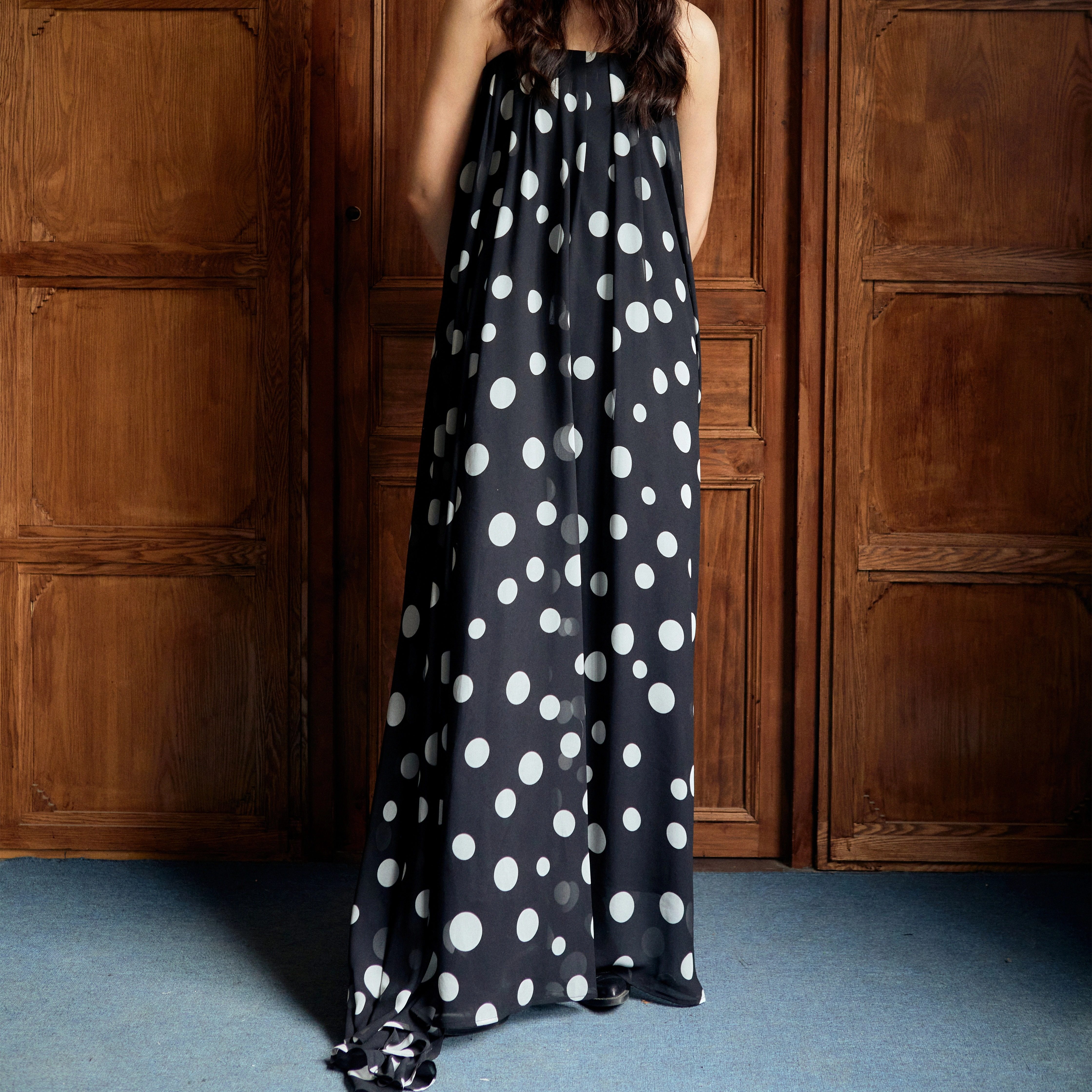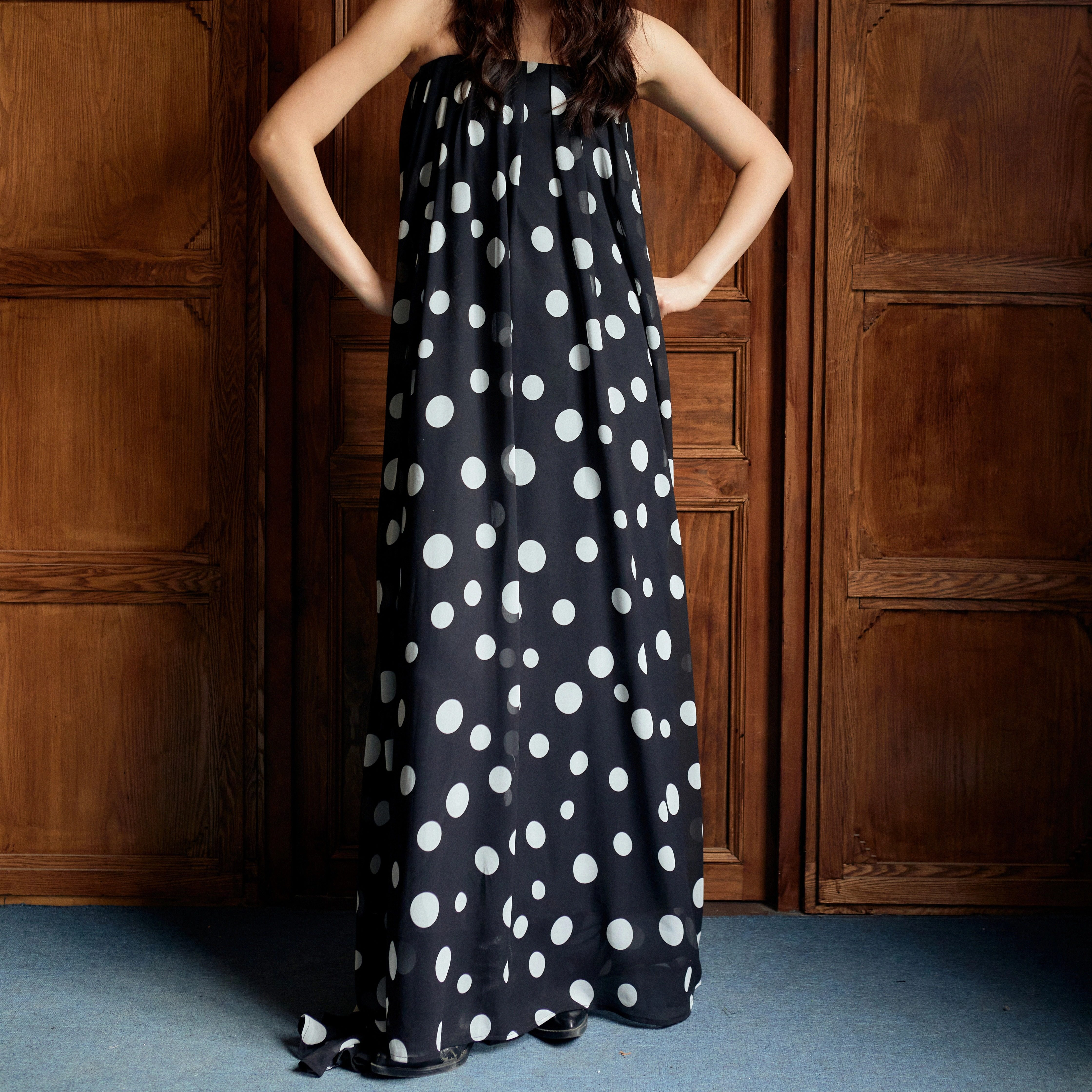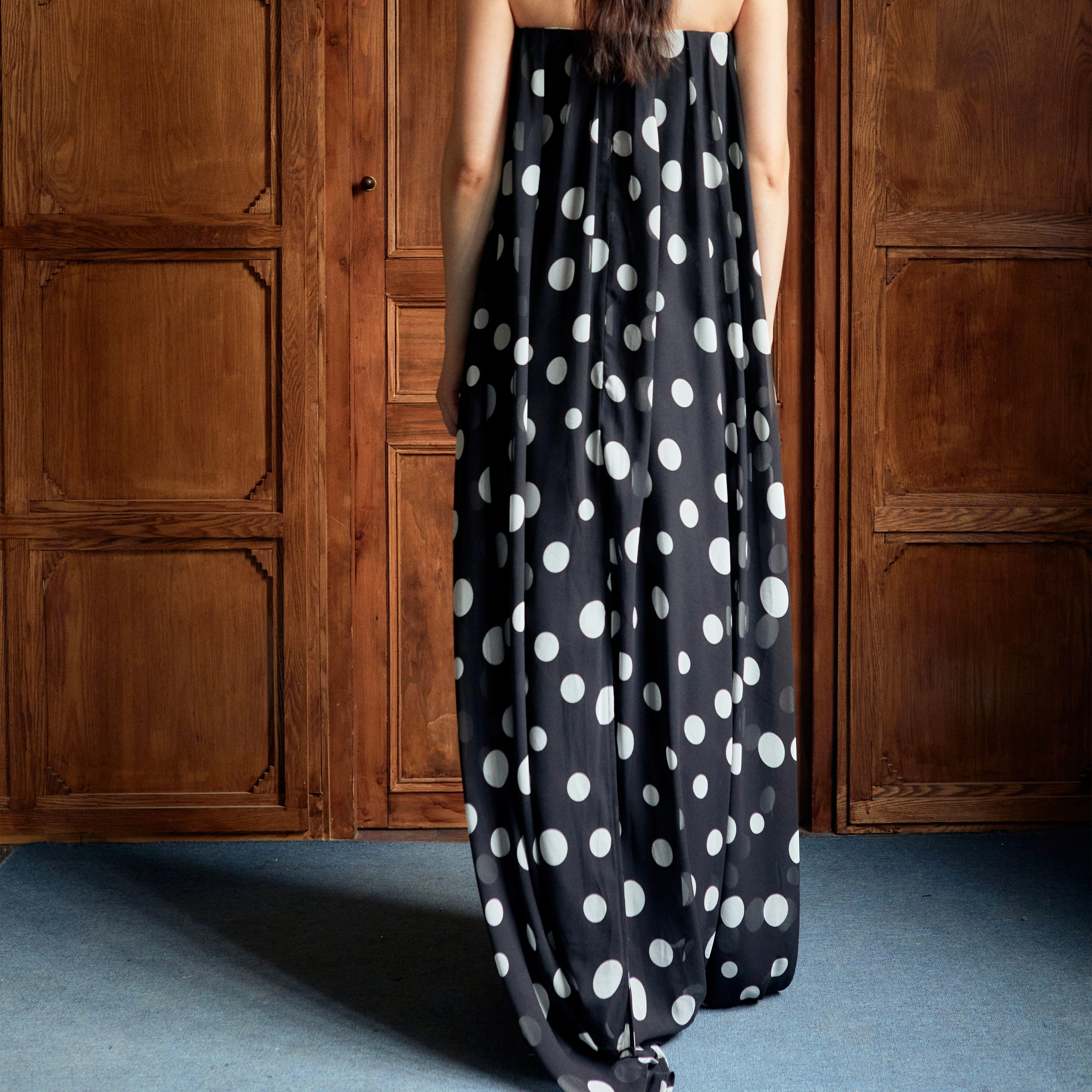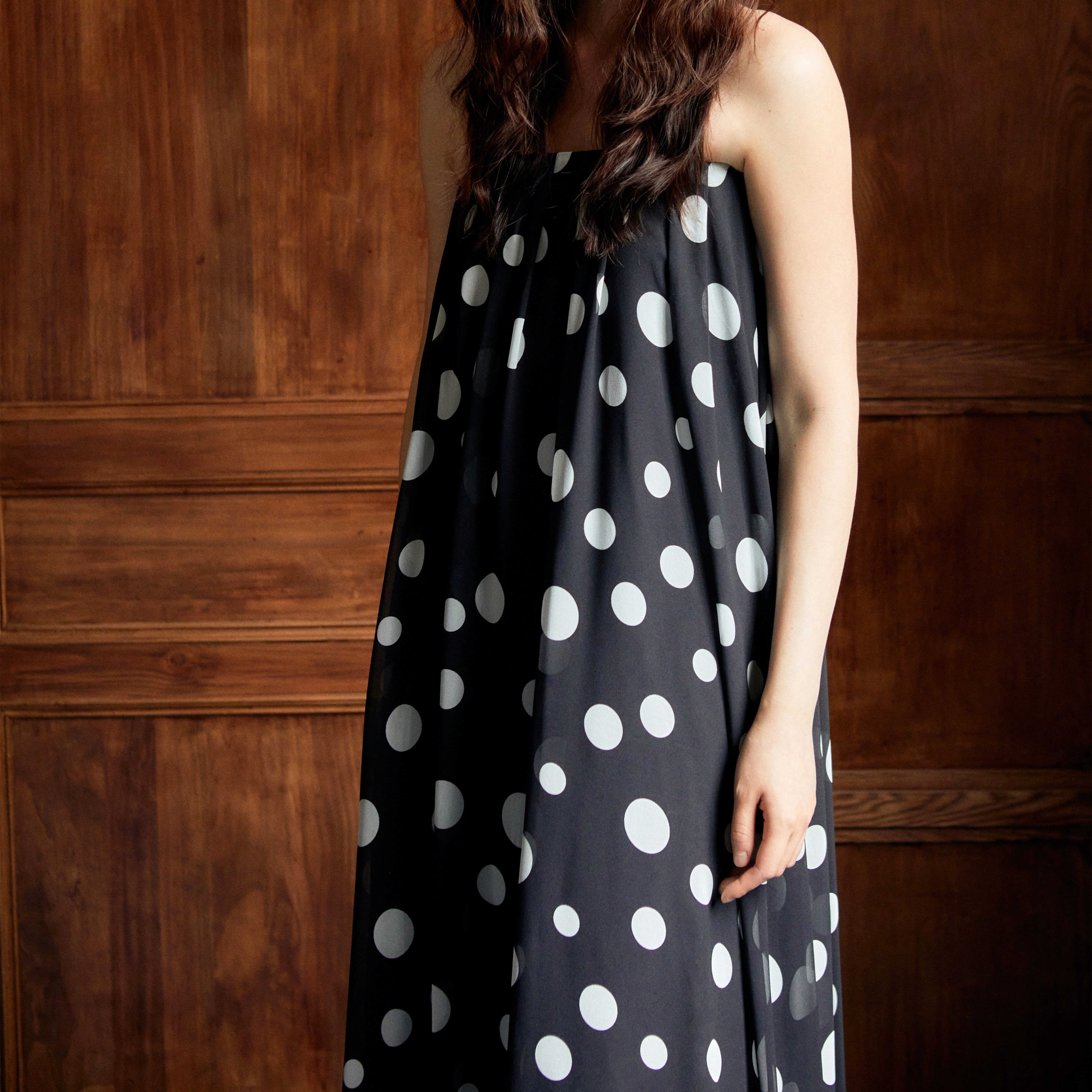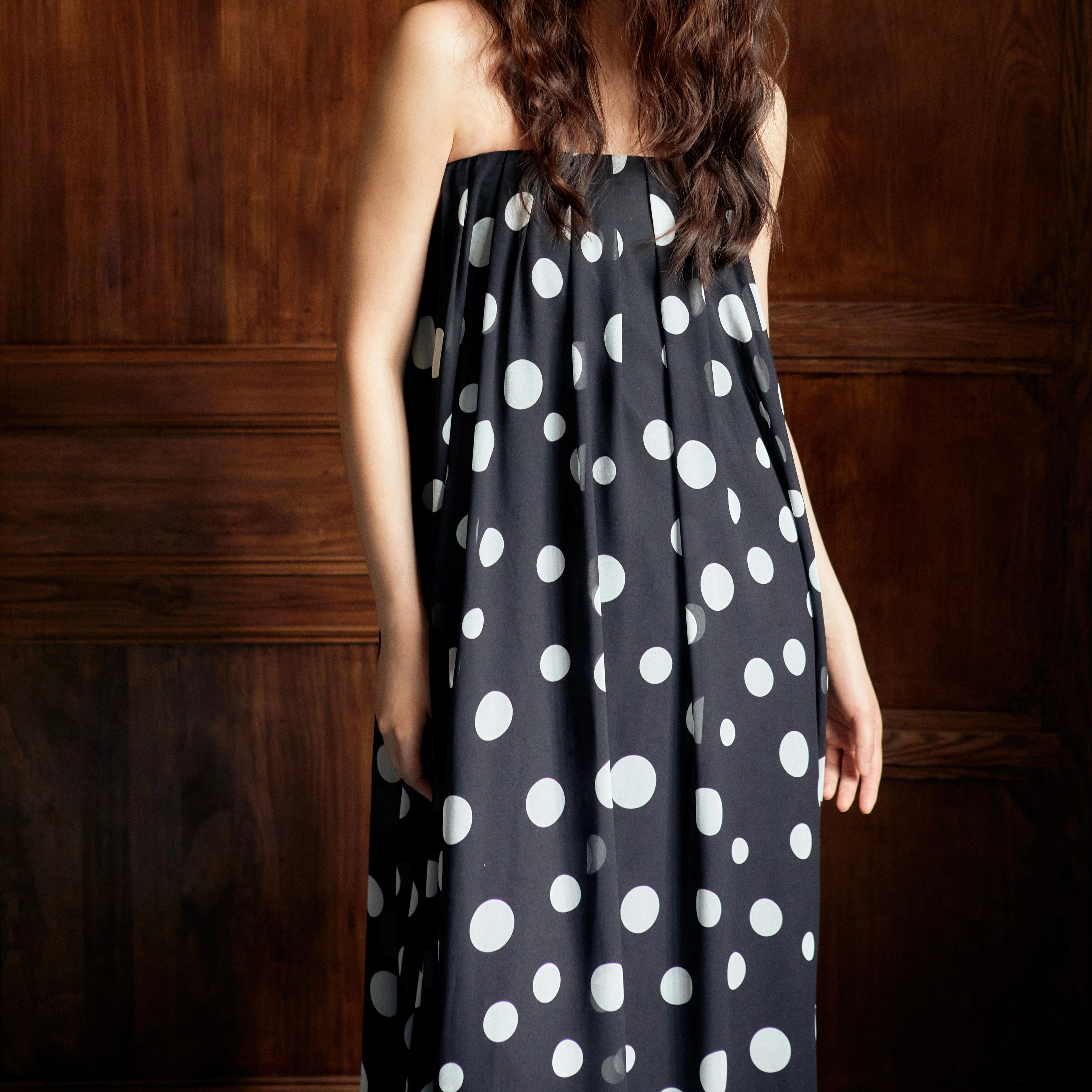 Shiitake「里昂的假期」波点抹胸连衣长裙2025秋季新款