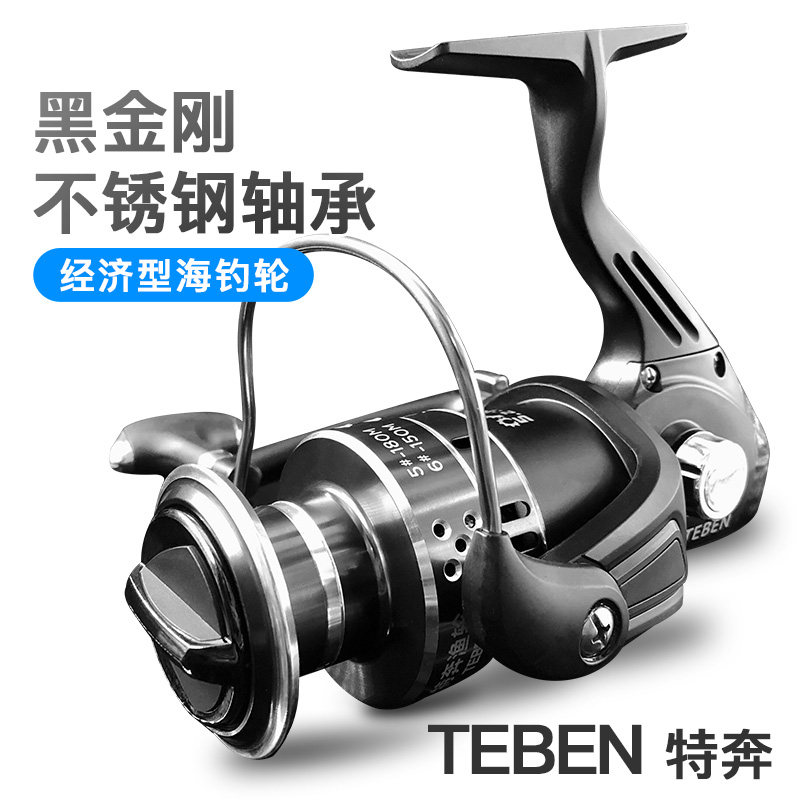 特奔渔轮黑金刚海竿钓轮不锈钢轴承纺车轮鱼线轮海竿抛杆远投渔轮