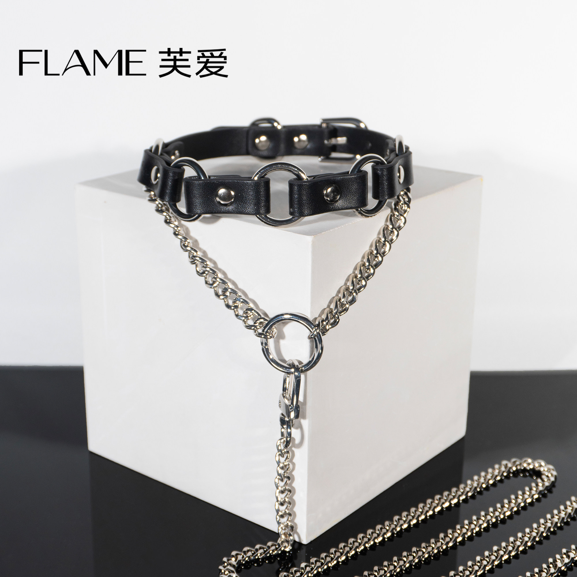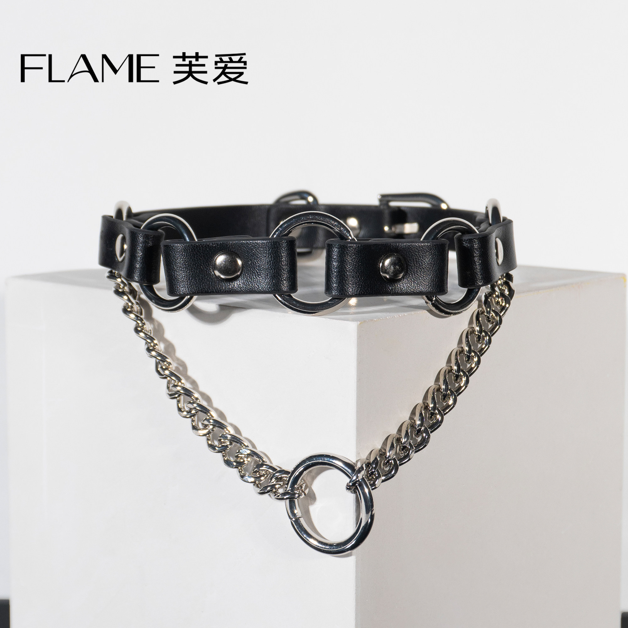 情调朋克项圈颈圈男女choker项链真皮k9小狗puppy牵引绳定制刻字
