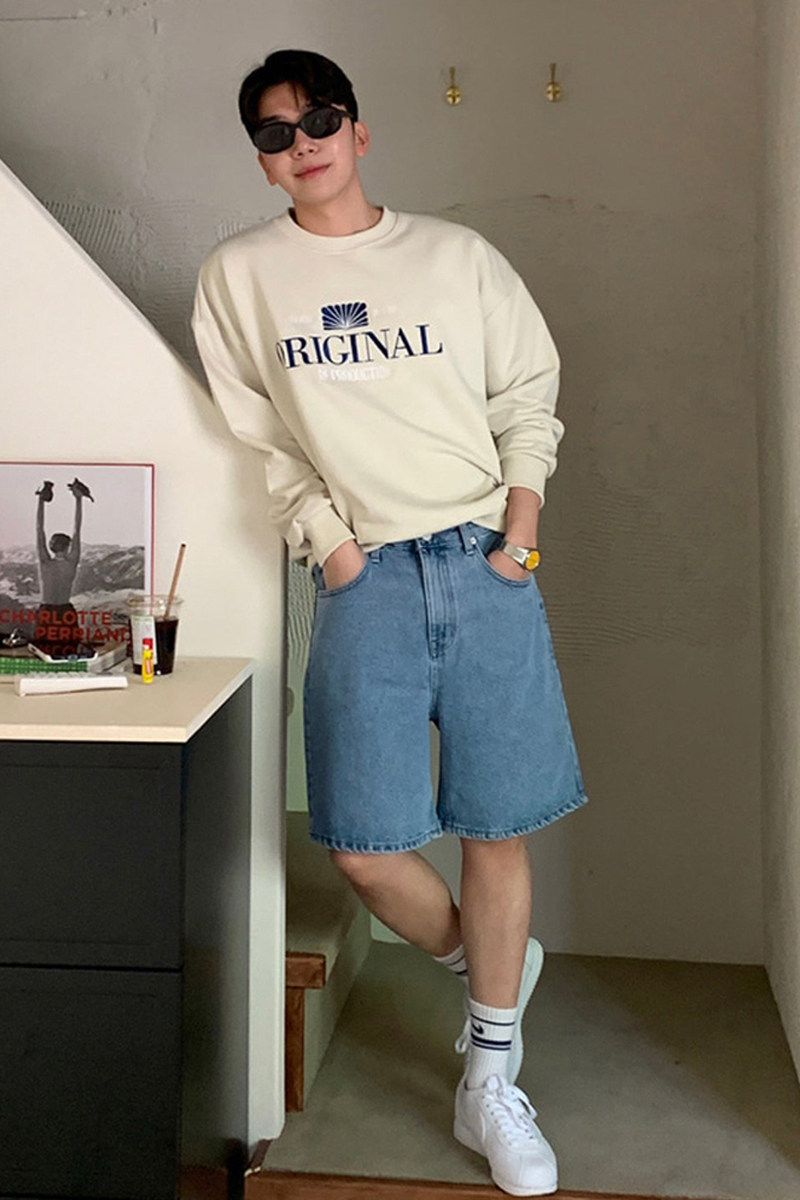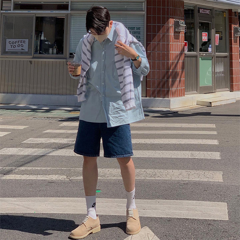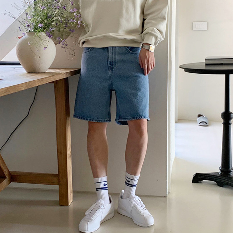 韩国代购IDUN牛仔短裤男高品质水洗加工重工5色百搭休闲直筒情侣