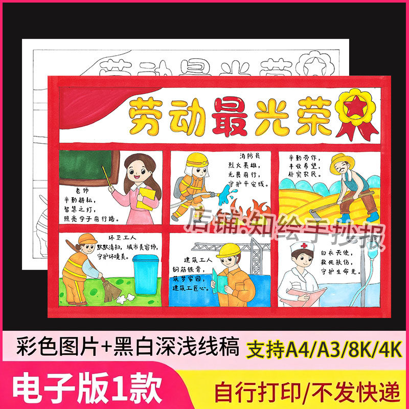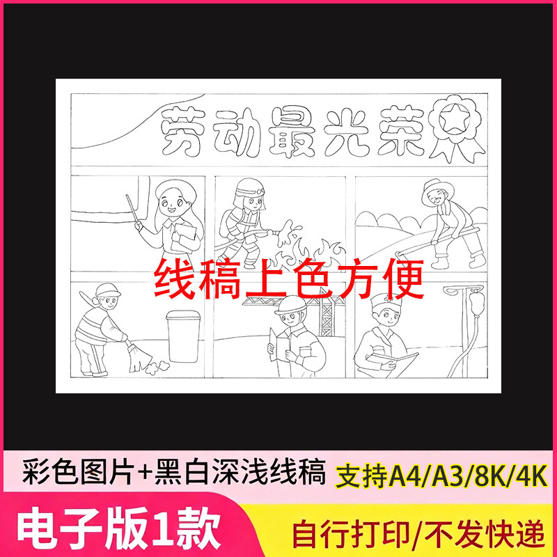 劳动最光荣主题画手抄报51五一节致敬最美劳动者模板电子线稿小报