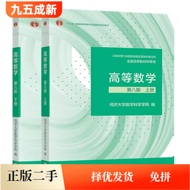 二手95新上下册、高等数学第八版8版上册同济大学数学学院高等教育出版社高数大一教材考研数学9787040589818、9787040588682