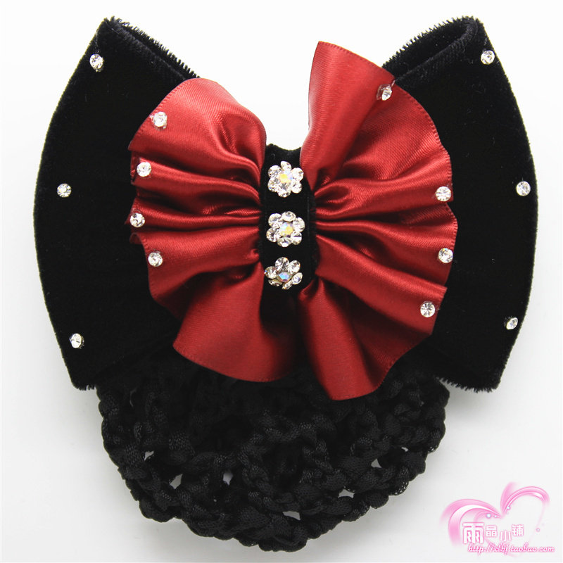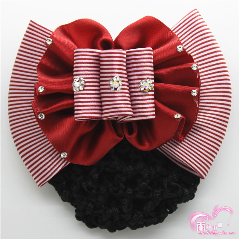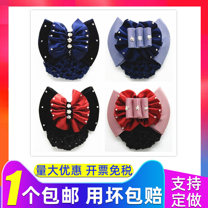 职业头花新款韩式发网职业盘发饰空姐银行带钻护士蝴蝶结头花包邮