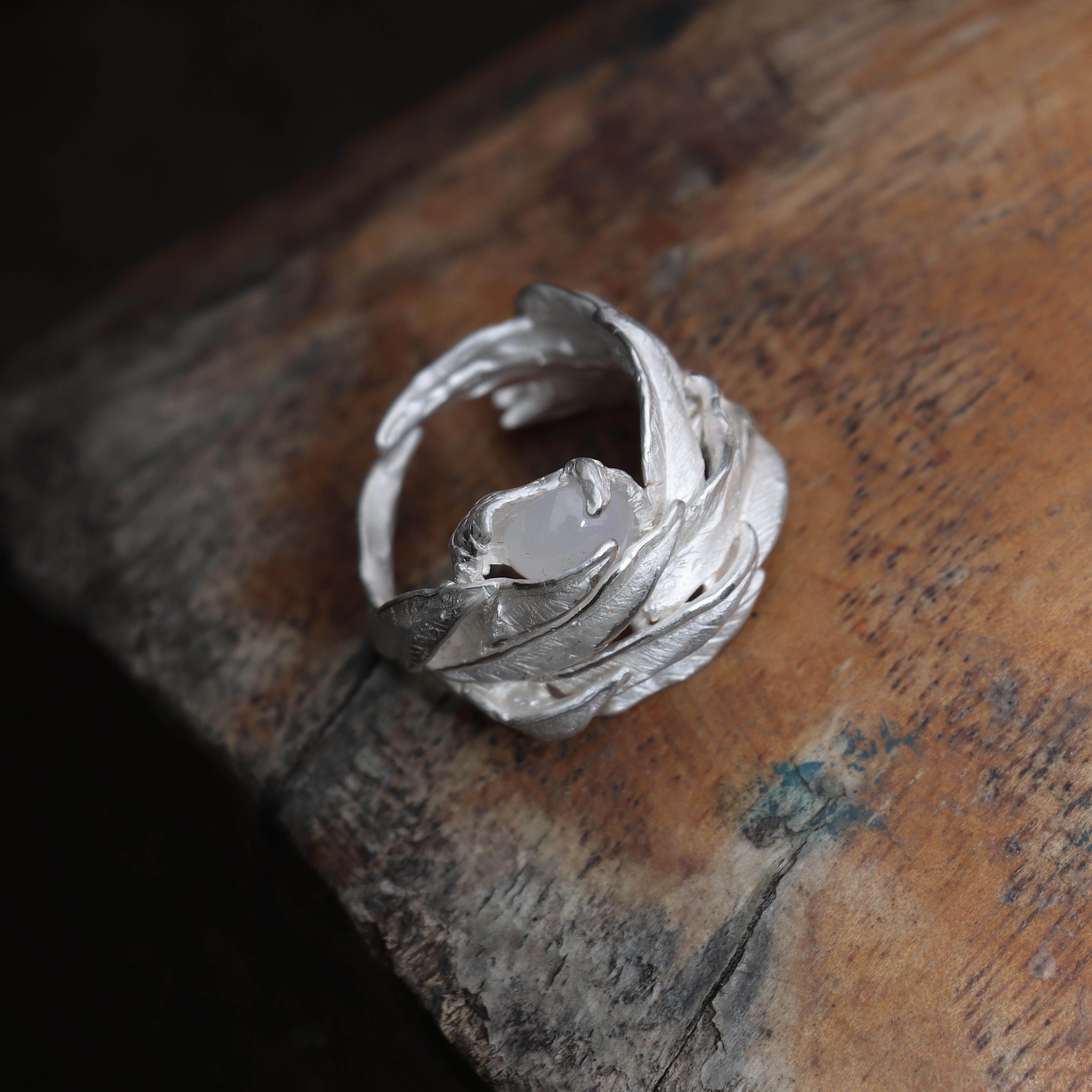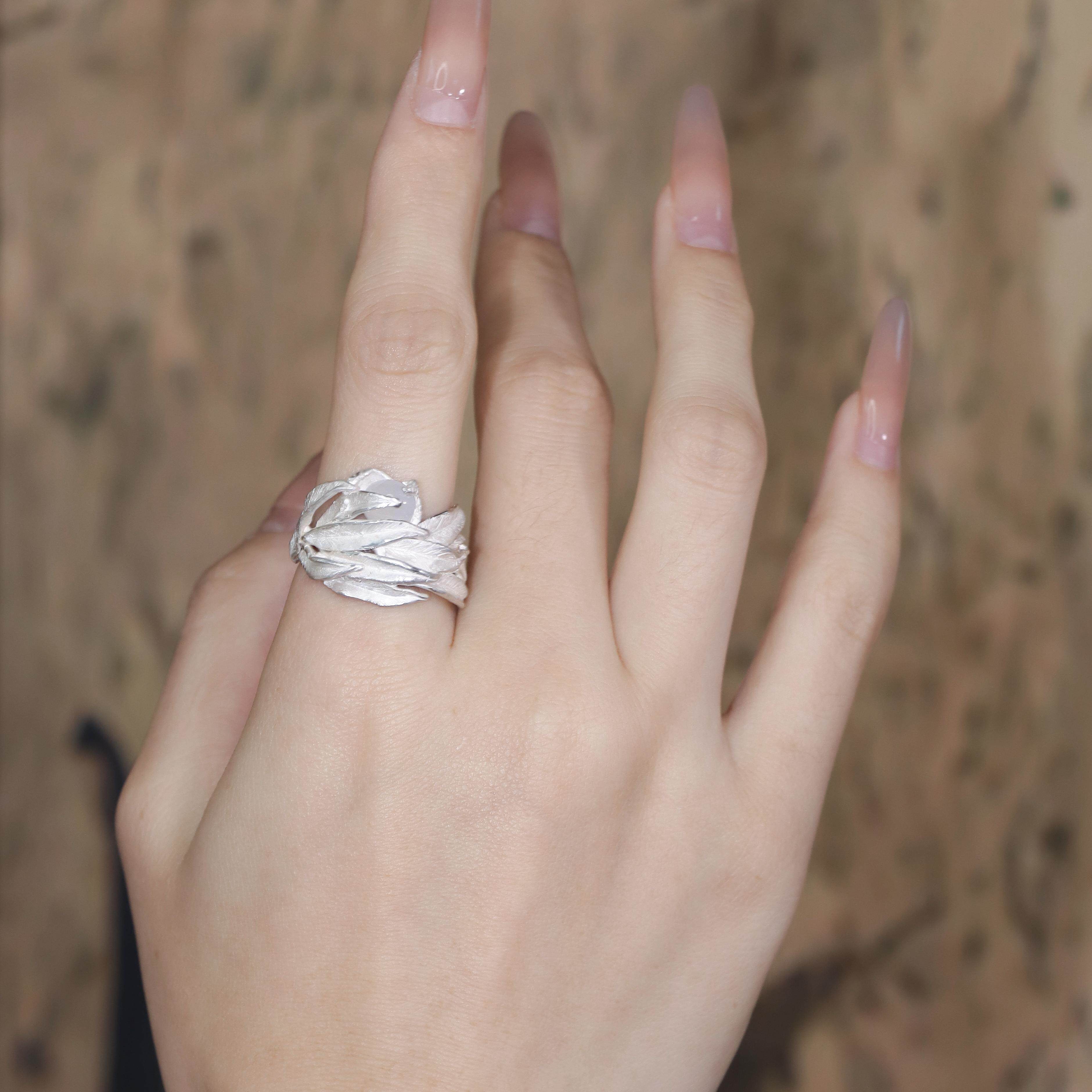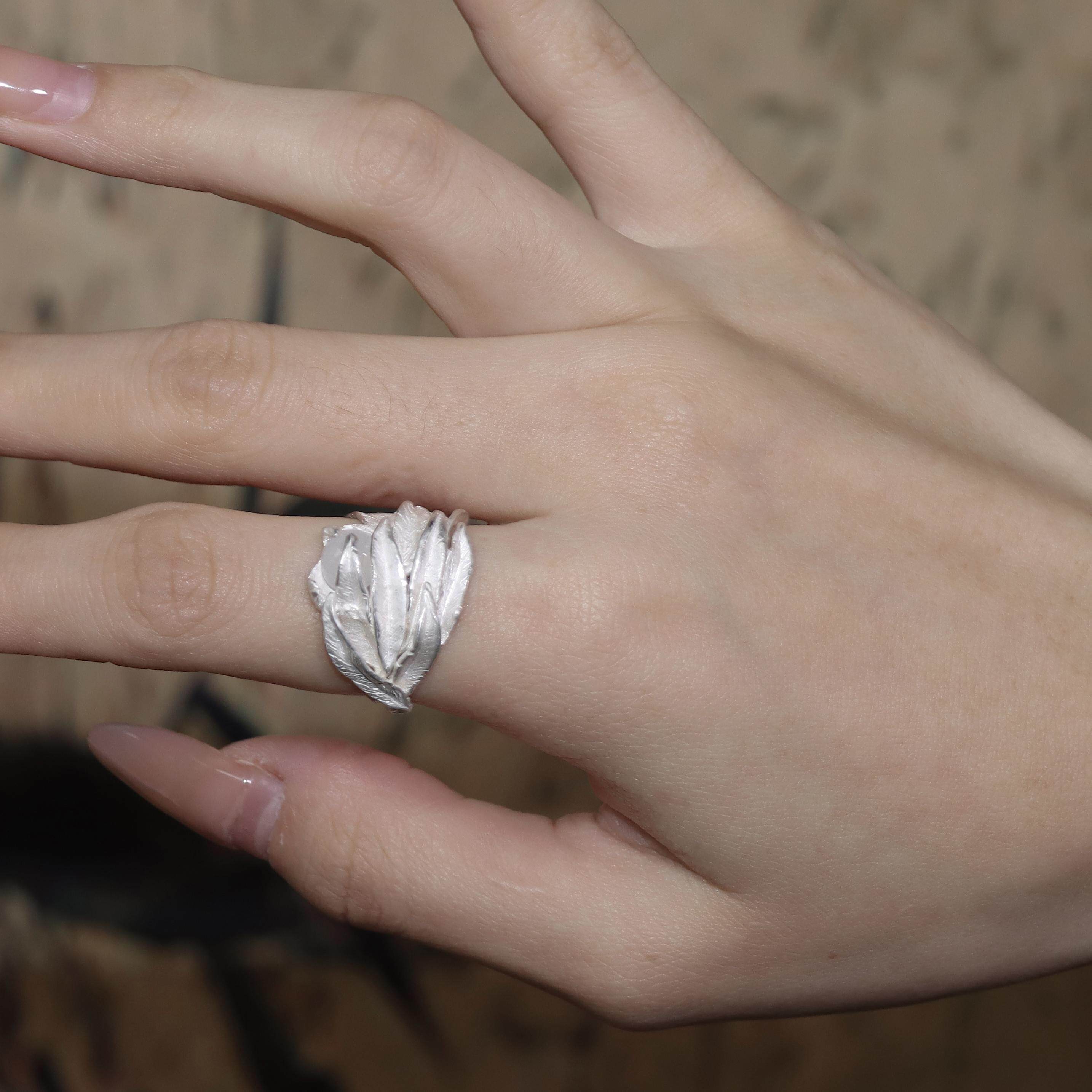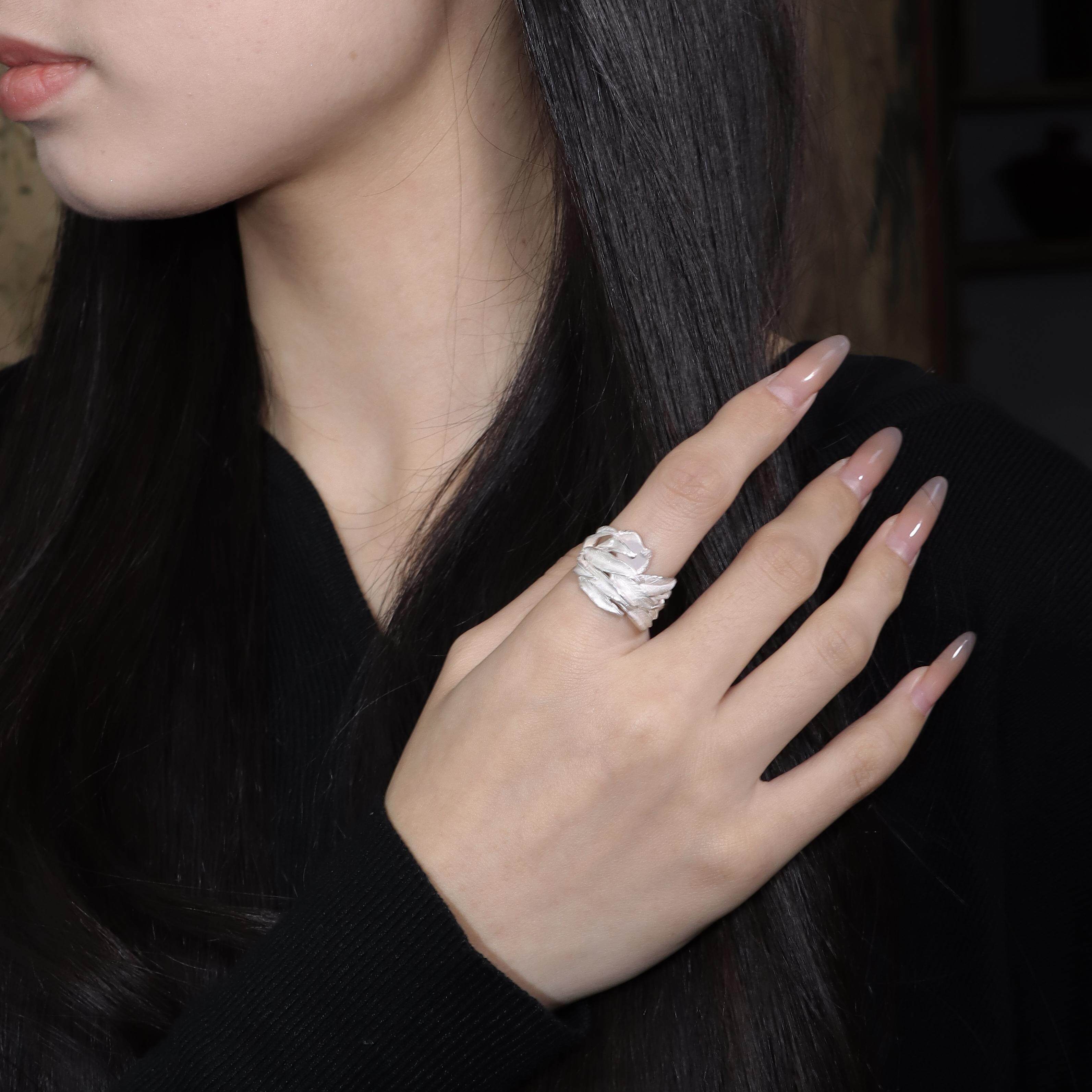 東黑三白/ 春风白柳新 s930纯银原创设计烧白开口中性女戒指礼物