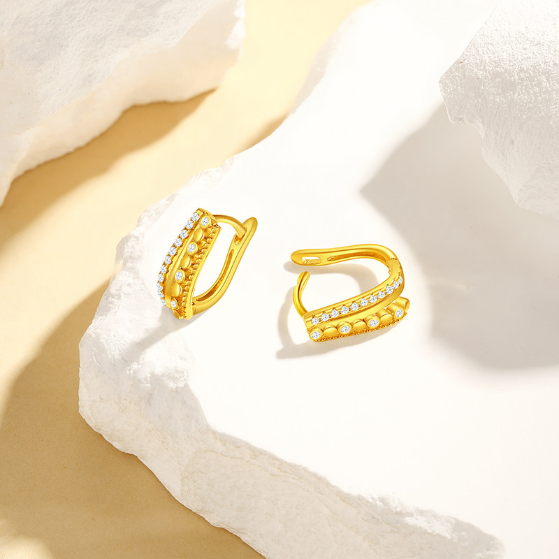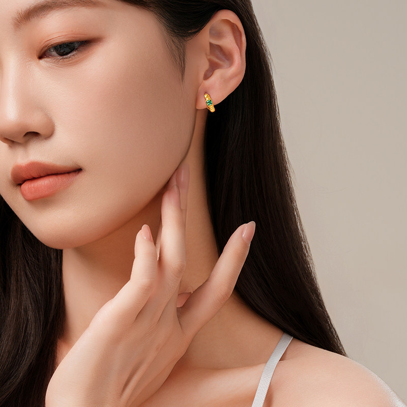 潮宏基简奢s925银耳钉银饰镶嵌耳钩时尚ins风女生日礼物潮奢经典