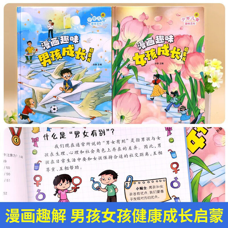 漫画趣味女孩成长启蒙书 漫画趣味男孩成长启蒙书帮助更好地认识自己健康快乐安全成长少年儿童版百科全书女生男生枕边书早教绘本