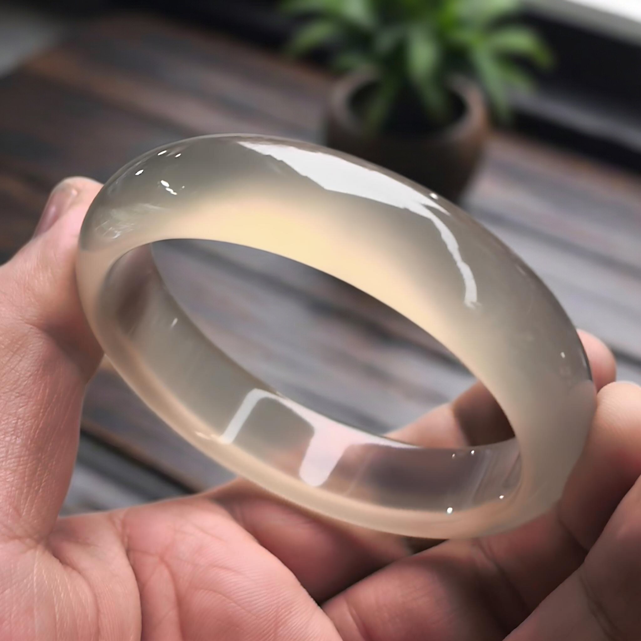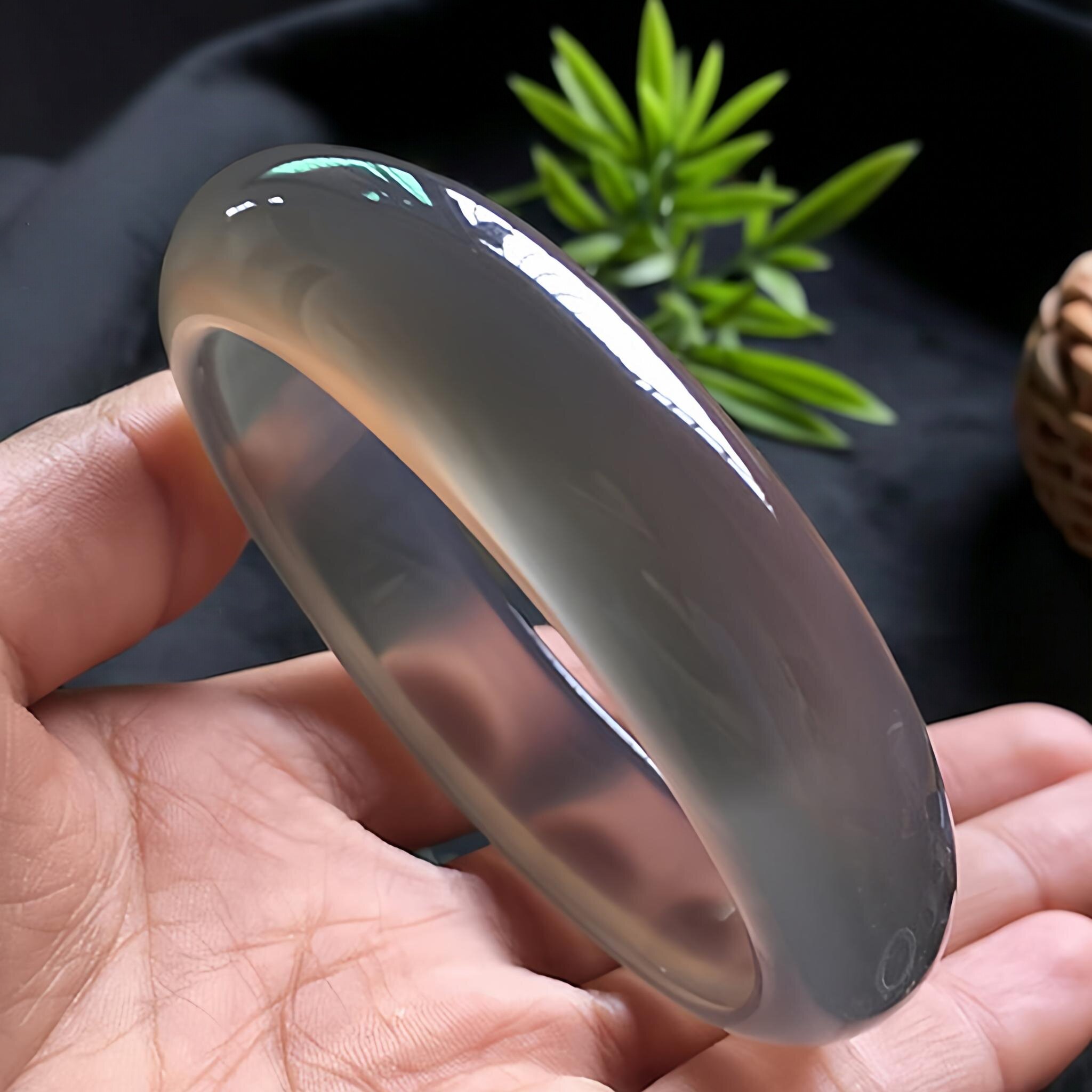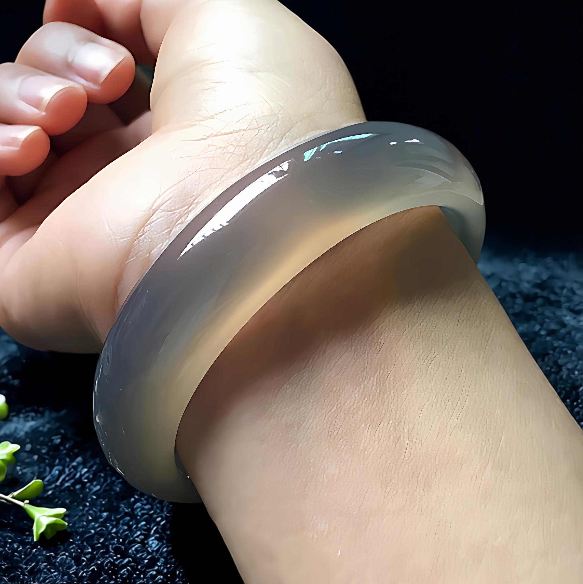 天然正品玉手镯冰种巴西烟灰玉髓玉镯子女款少女玛瑙旺夫年轻圆条