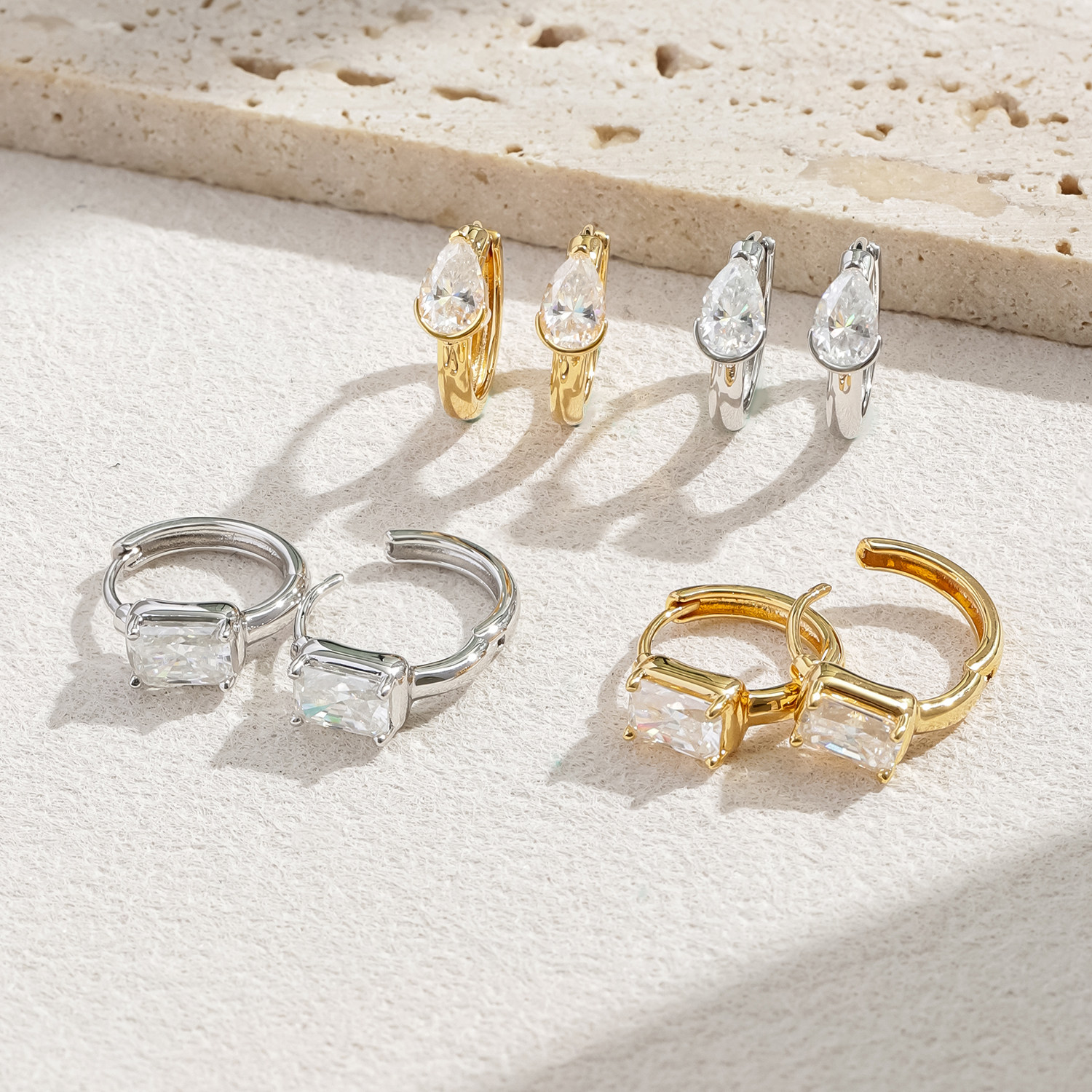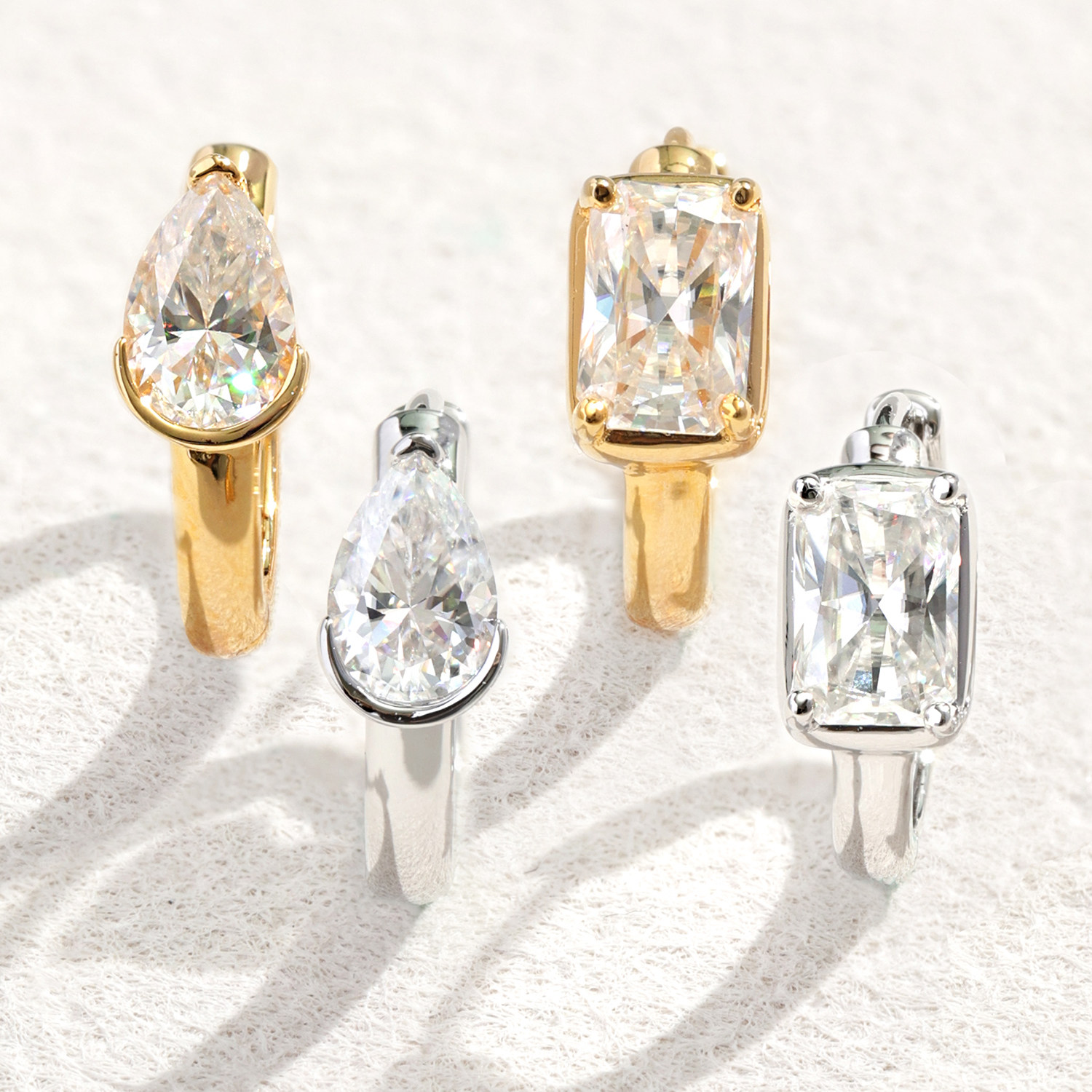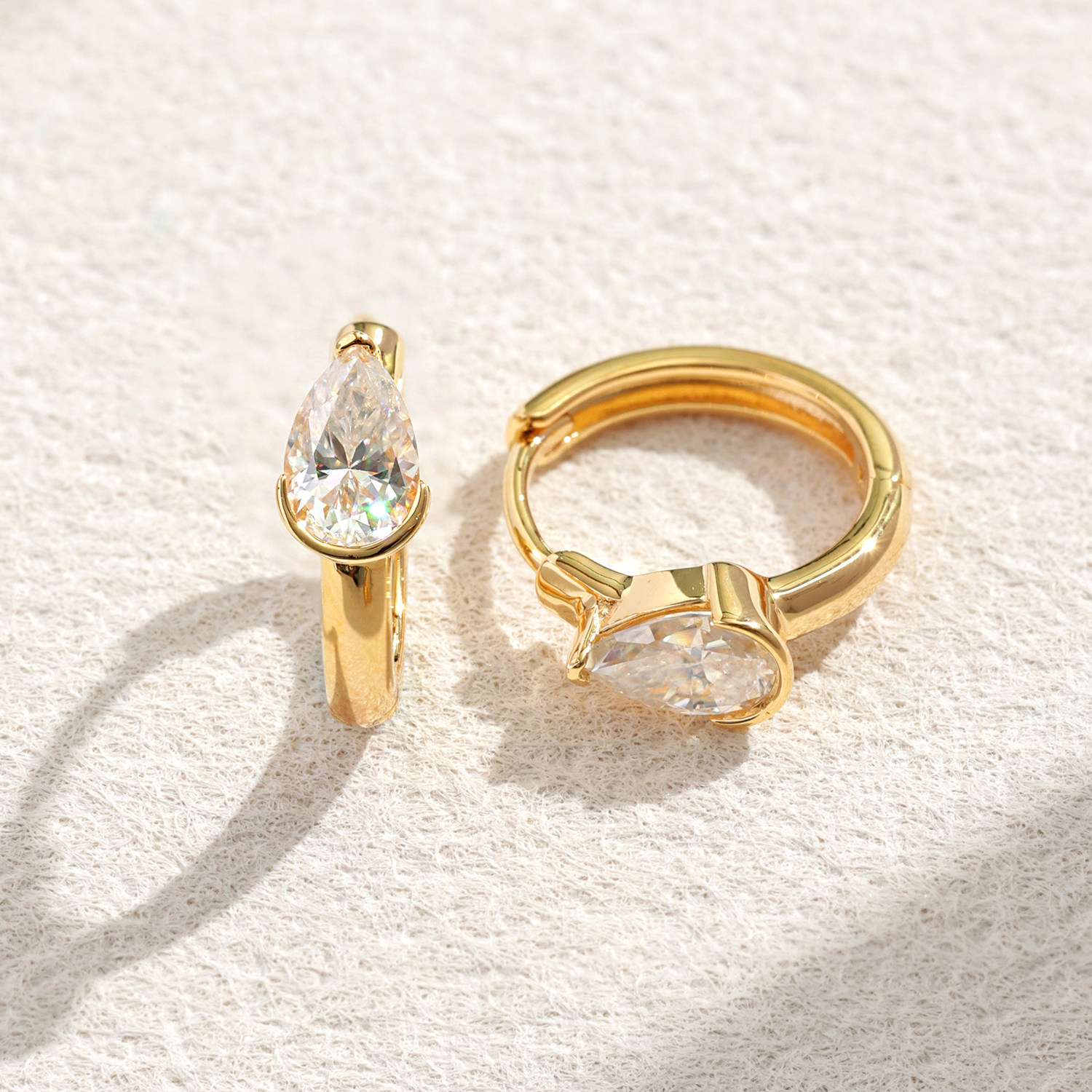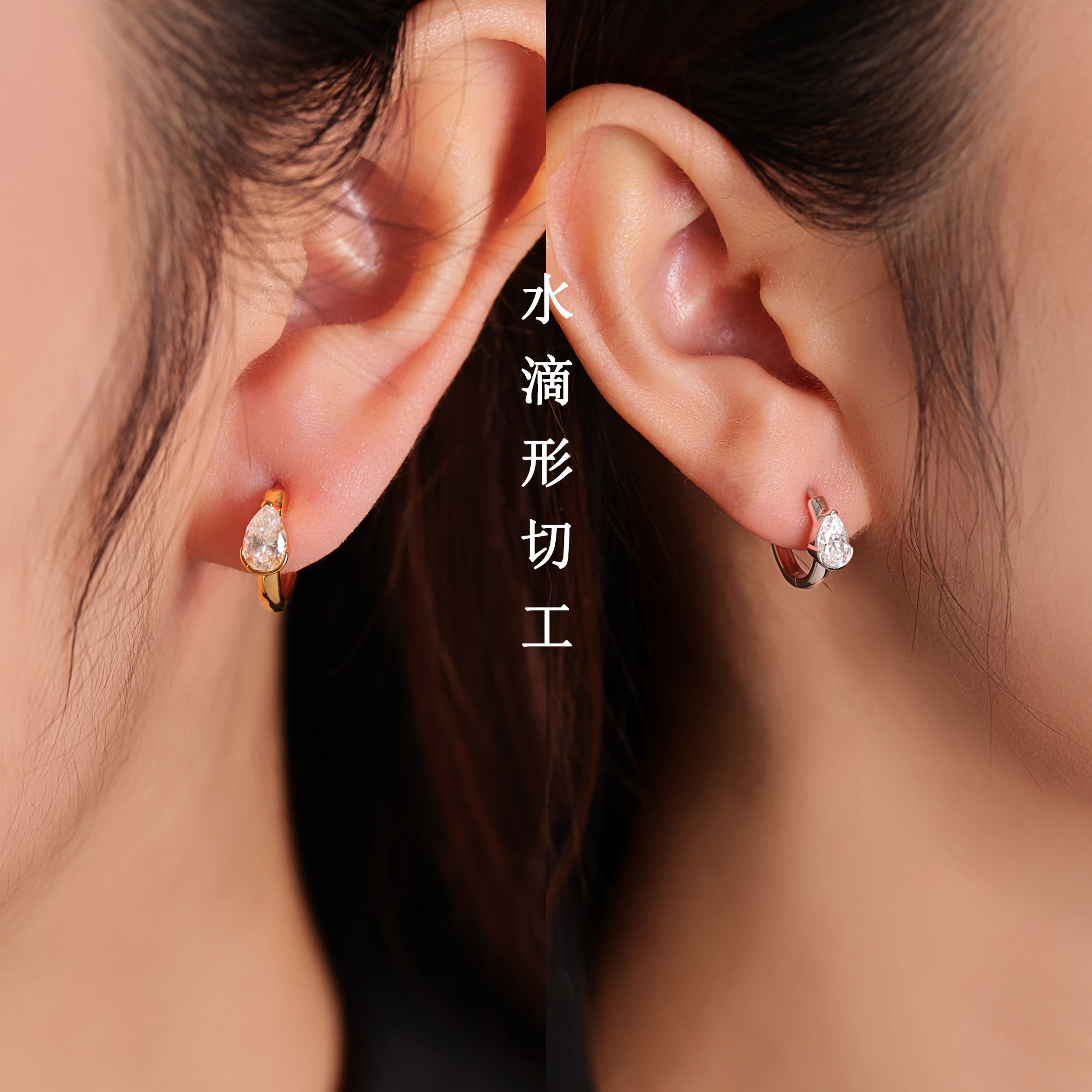 卓蝶珠宝925银电镀18K黄金异形莫桑钻耳环水滴形耳圈雷迪恩莫桑钻