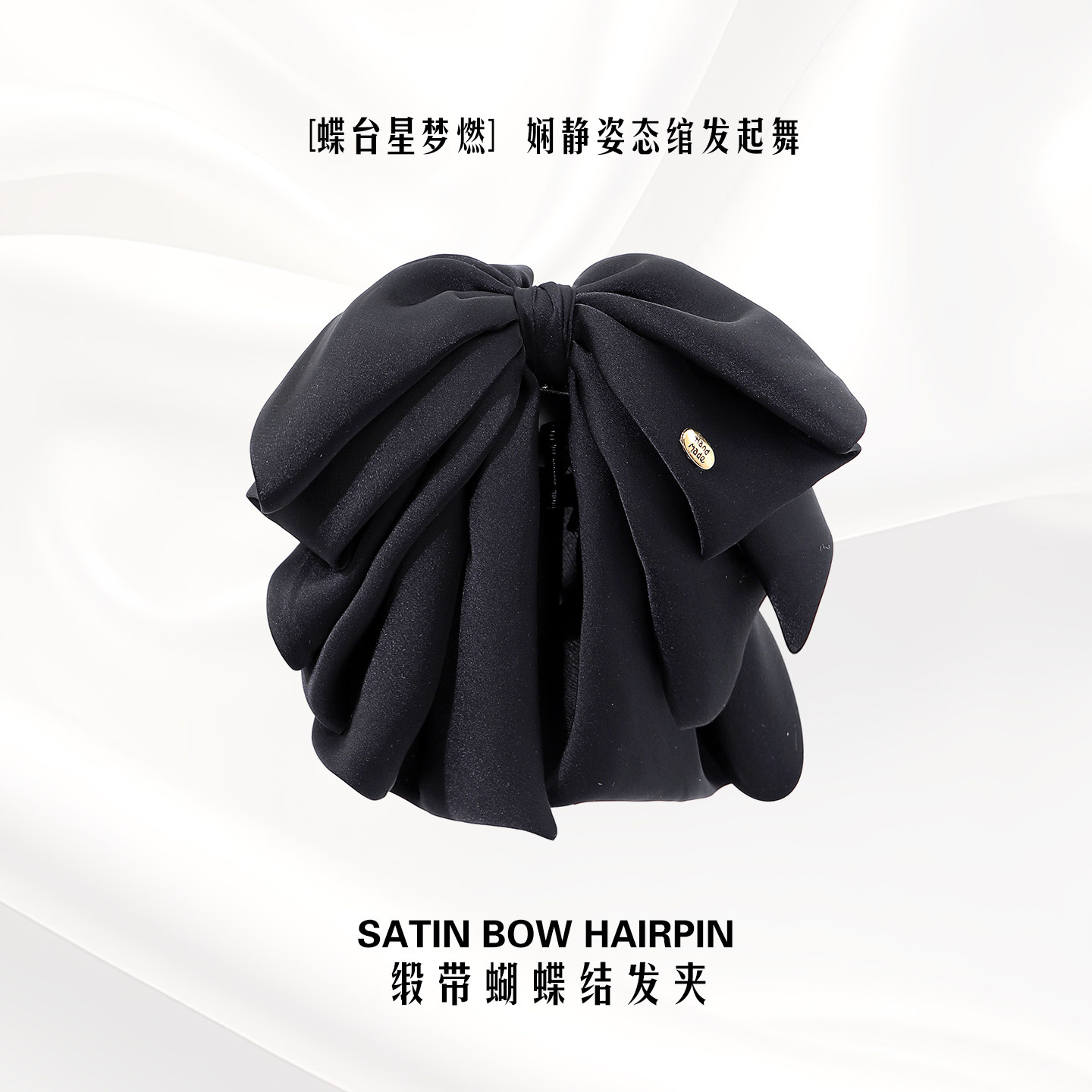 韩系黑色缎带蝴蝶结发夹女2026新款高级感后脑勺盘发抓夹发卡发饰