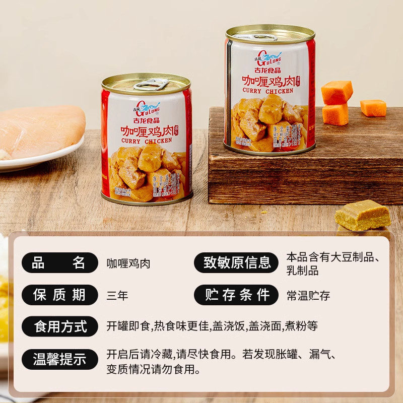 古龙咖喱鸡肉罐头240g开罐即食下饭菜拌饭户外熟食家用盖浇饭拌面