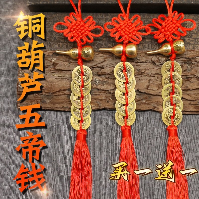 全黄铜葫芦五帝钱挂件开口化大门对门对窗户卧室横梁中国结铜钱串