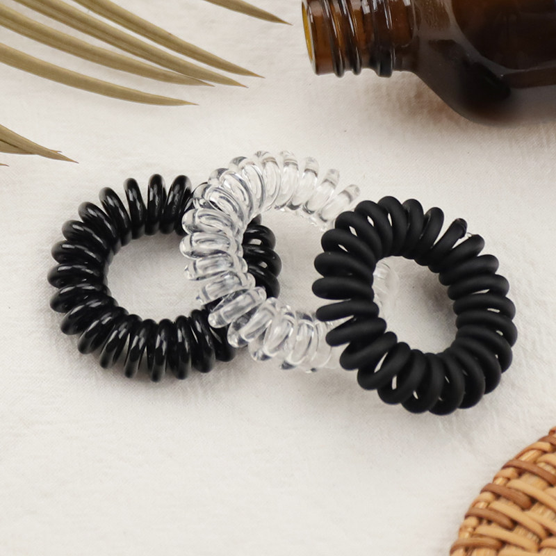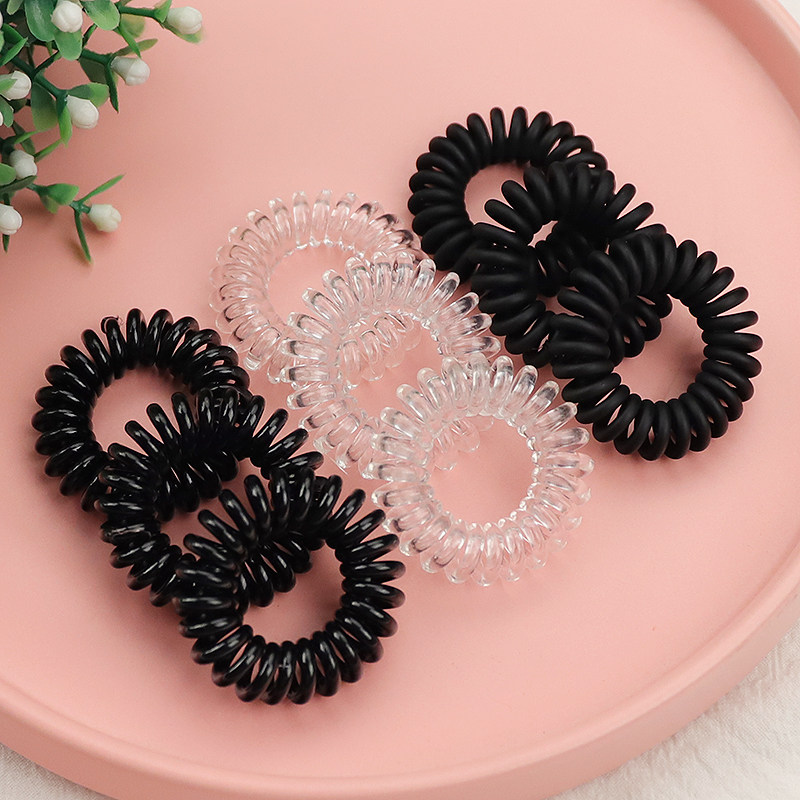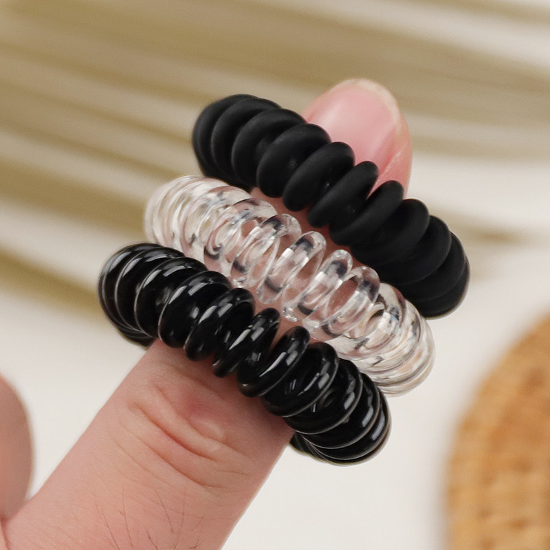 韩版黑色透明磨砂电话线发圈 学生基础纯色头绳韩版扎头发皮筋ins