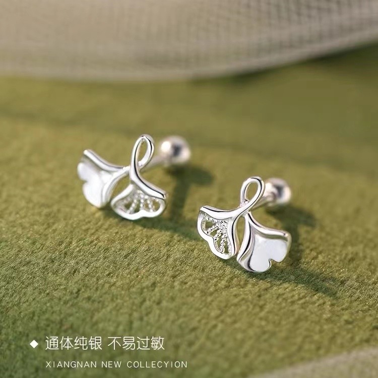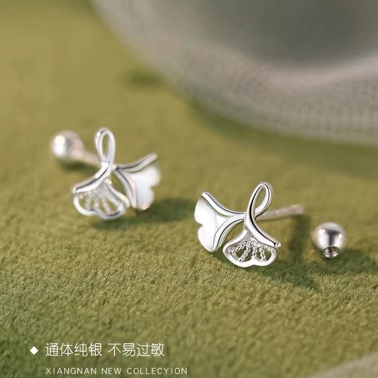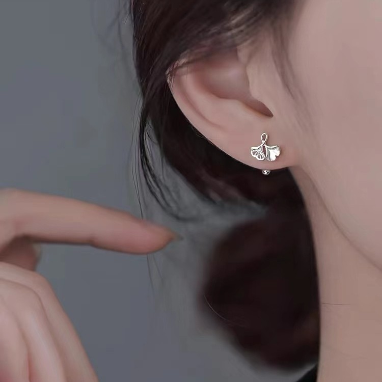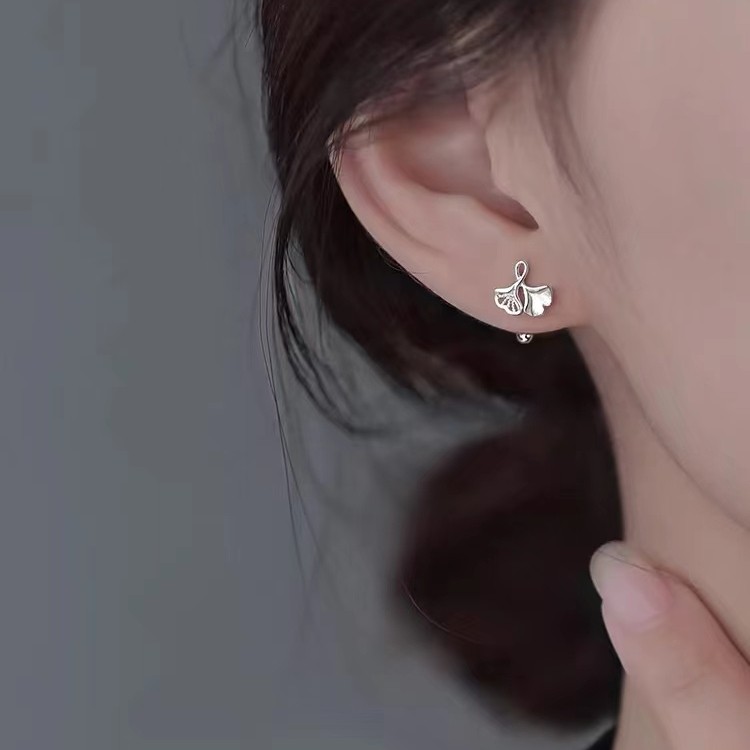 925纯银杏叶耳钉新款2024爆款小众耳环女轻奢高级感耳饰