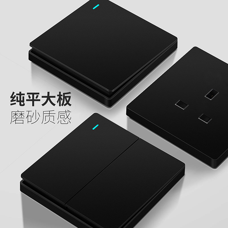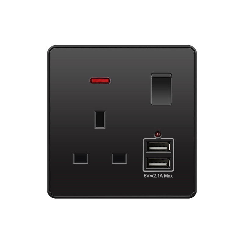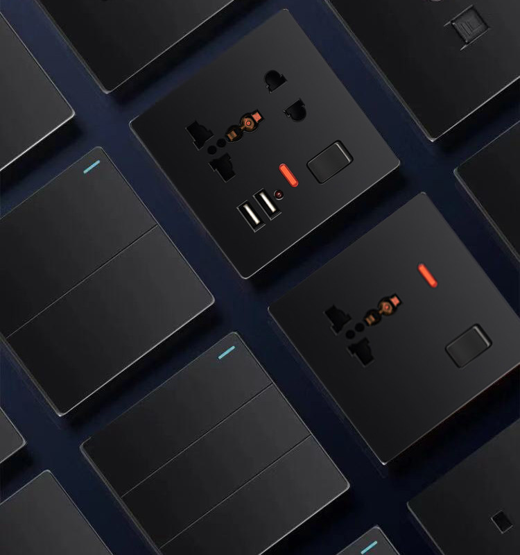 香港双13A国际通用多功能五孔插座USB充电英标电灯制开关黑色面板