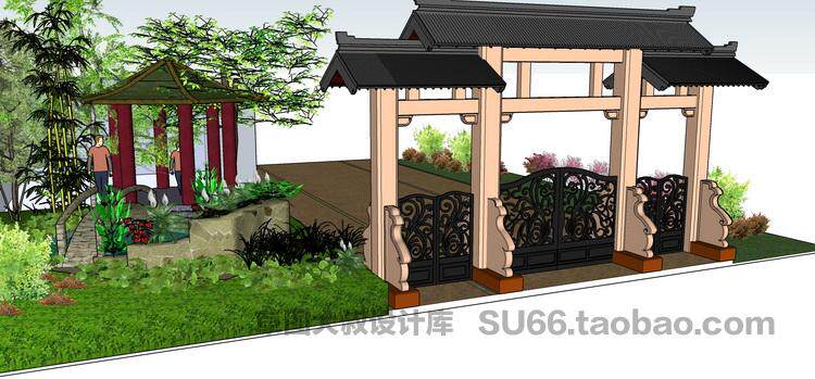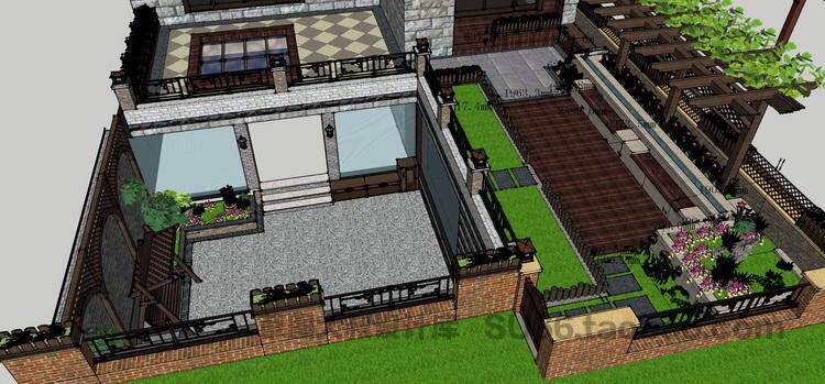 庭院别墅景观SketchUp模型/私家花园院子景观小品园林SU草图模型