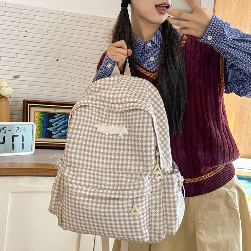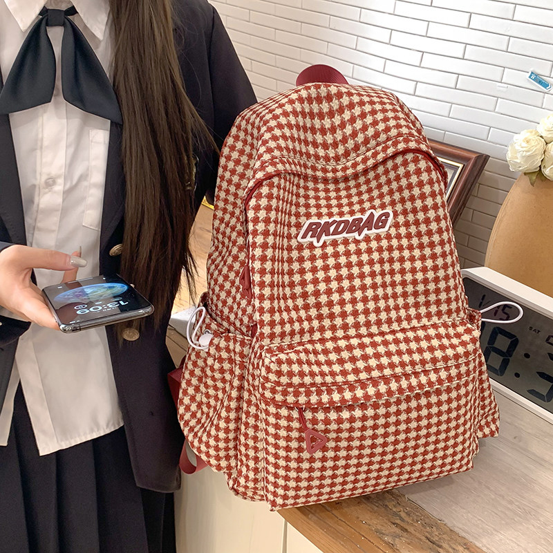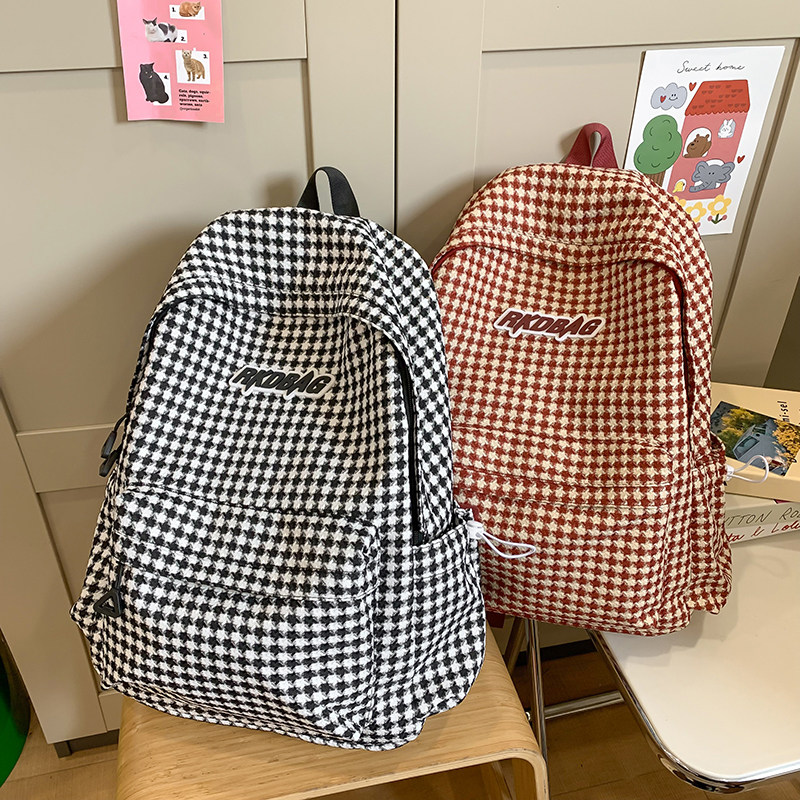 FEO千鸟格高颜值书包女森系复古风简约格子纹双肩包小众休闲背包
