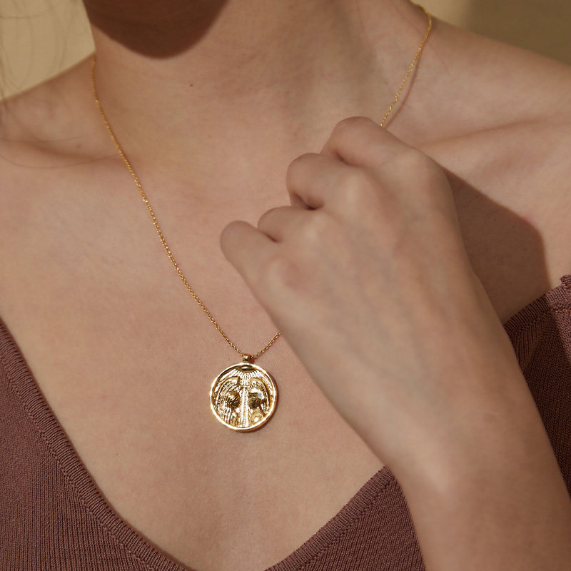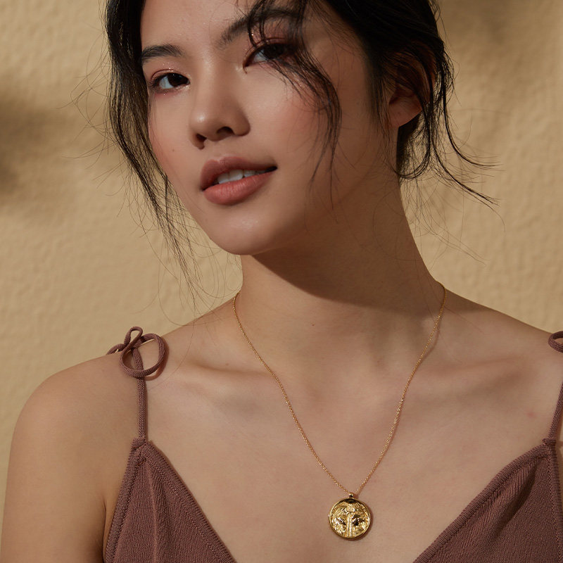 塔罗系列 18K镀金恋人项链复古钱币风锁骨链女简约气质长链送女友
