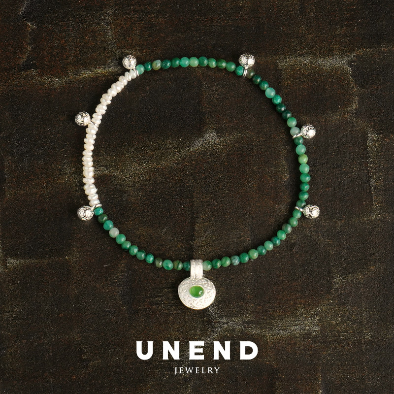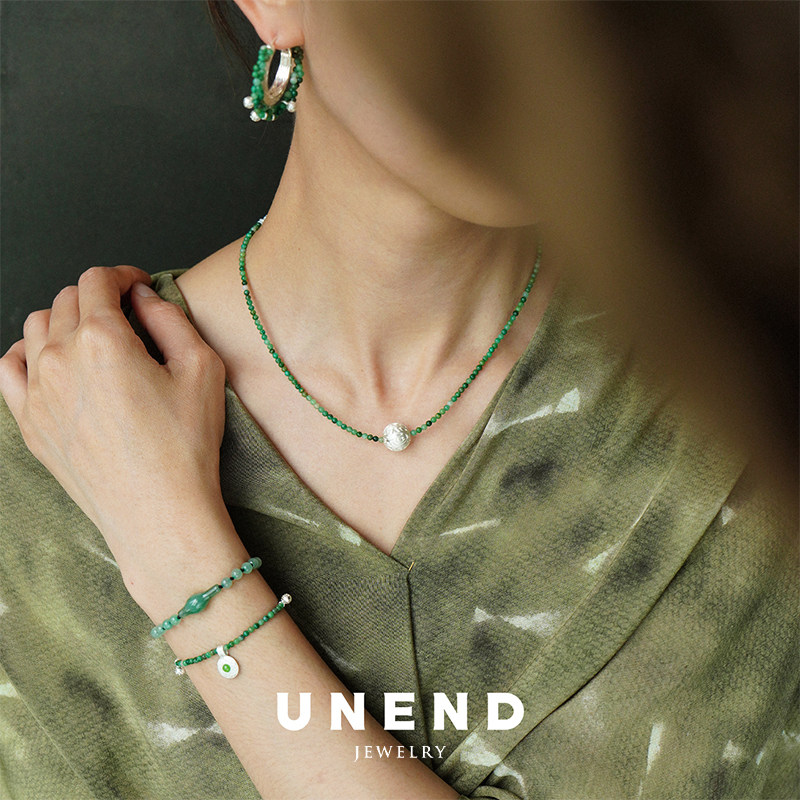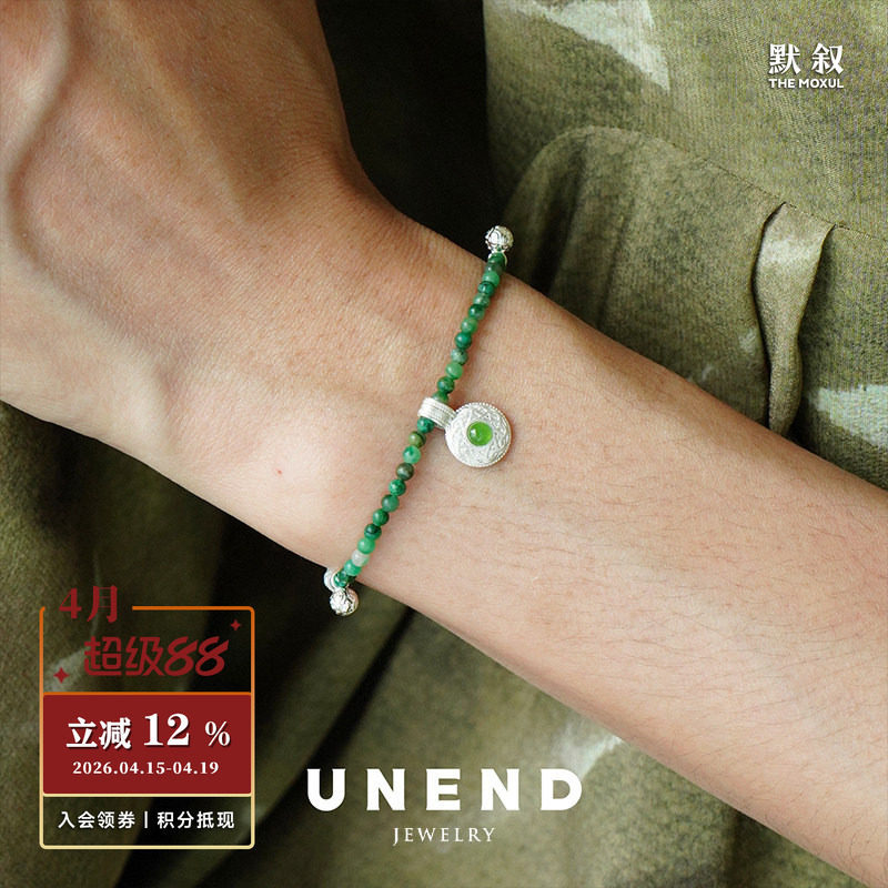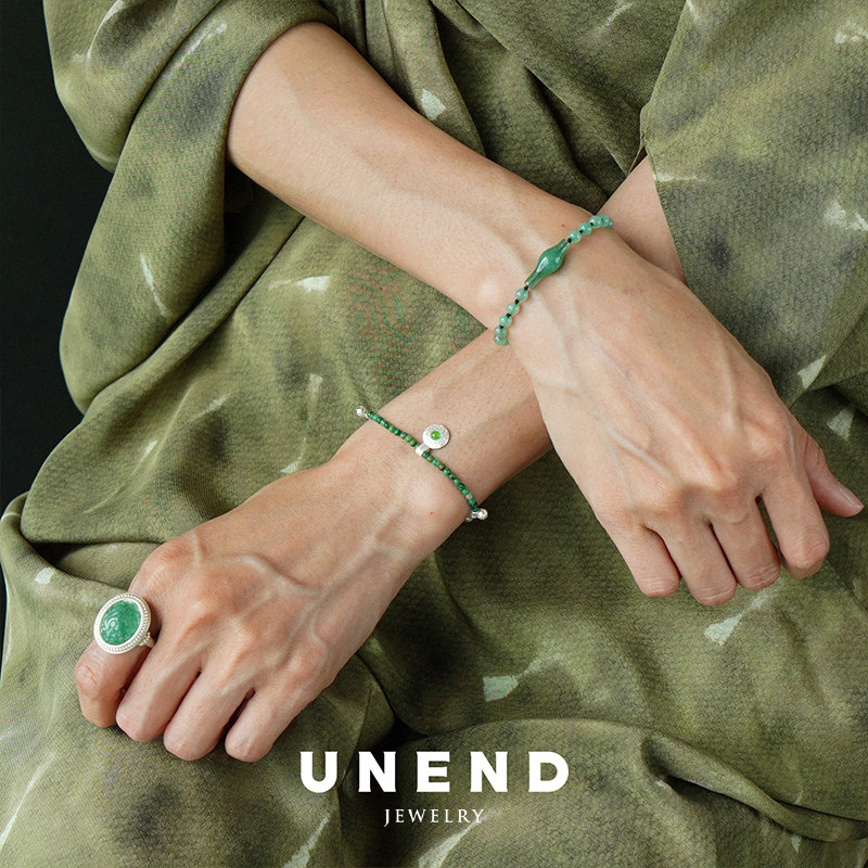 UNEND止续 纯银翠印Script手链 设计绿东陵非洲绿玉度假手串 默叙