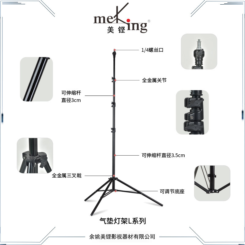 Meking美铿 L/WH/LK/MG/DZ/M 系列轻型铝制摄影气垫灯架L-2200FP补光灯直播支架户外便携伸缩三脚架