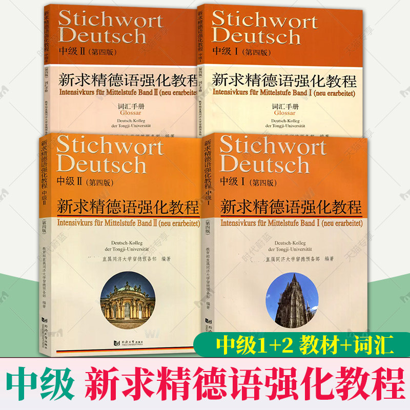 同济德语套装 新求精德语强化教程中级教材+词汇手册(中级1+中级2)中级I+II第四版 新编同济大学出版社 当代大学德语教材 大学德语