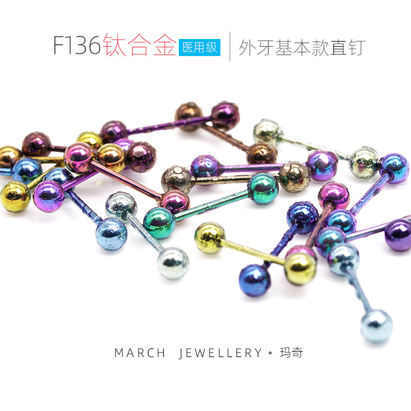 F136钛合金舌钉穿刺饰品欧美朋克辣妹耳桥外螺纹耳骨钉个性舌头钉