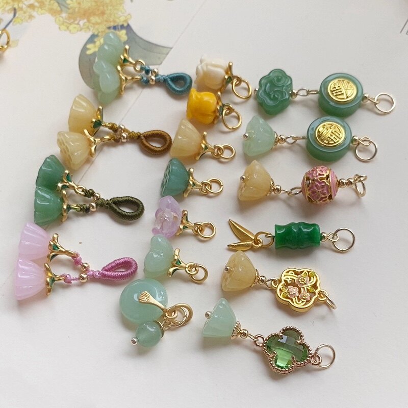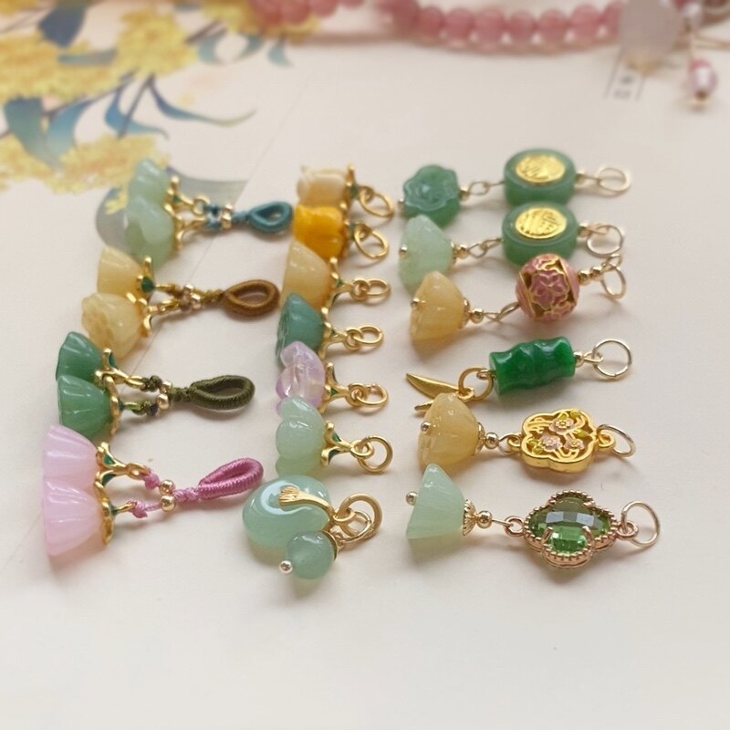 沙金挂件吊坠平安扣琉璃莲蓬diy手链配件小提溜手串配饰压襟材料