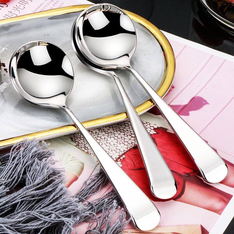 加厚不锈钢勺子家用韩式简约可爱网红吃饭成人汤匙创意长柄圆勺