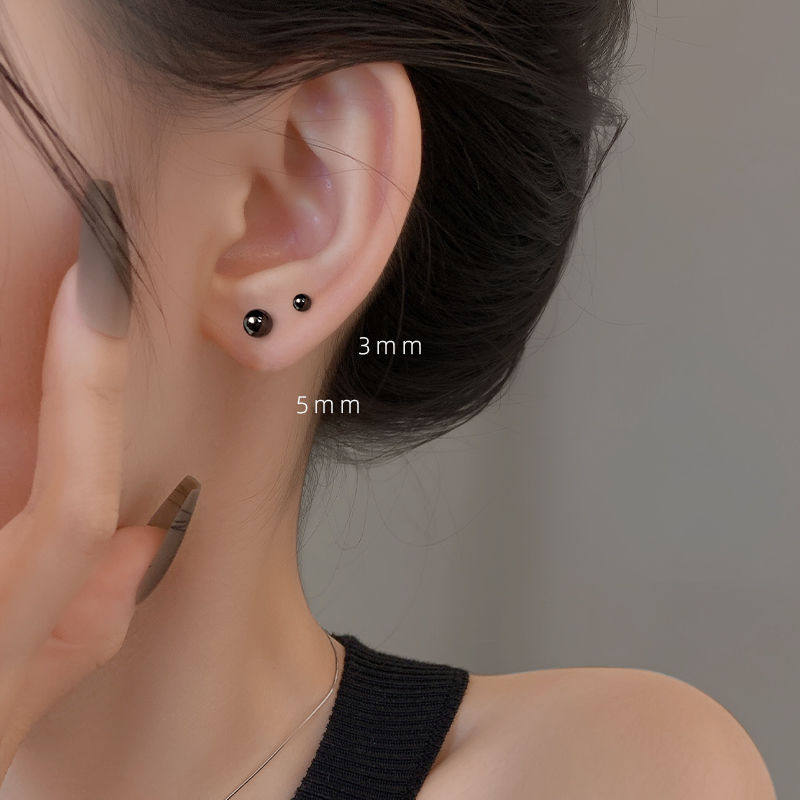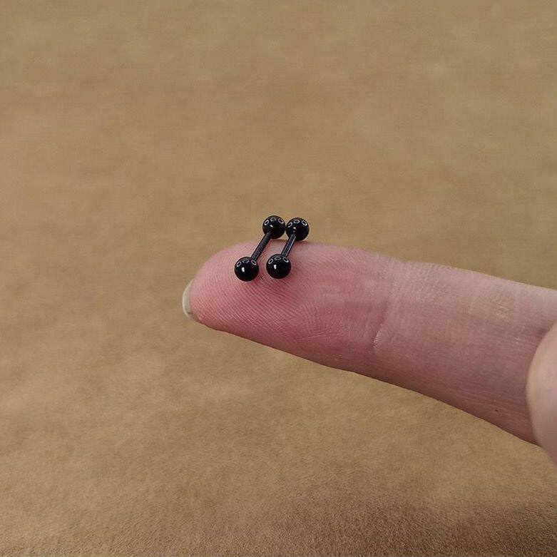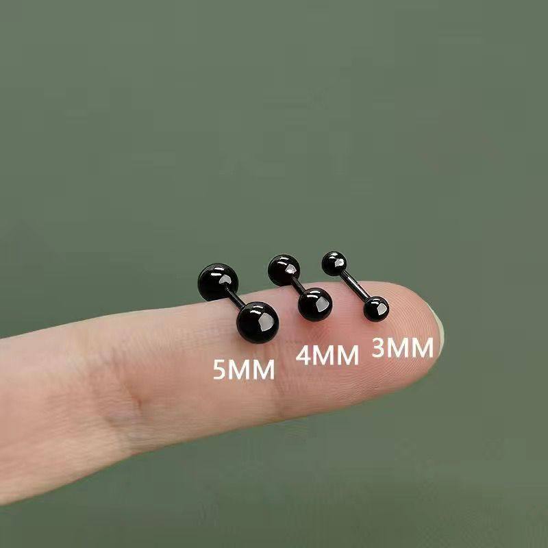 黑色豆豆双头螺丝拧扣养耳洞耳钉女耳骨钉睡觉免摘耳饰耳棒耳蜗
