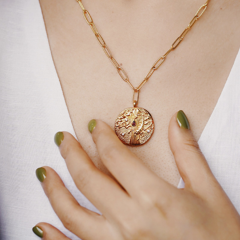 12星座节气定制系列18K镀金天蝎座双面钱币项链 生日礼物欧美复古
