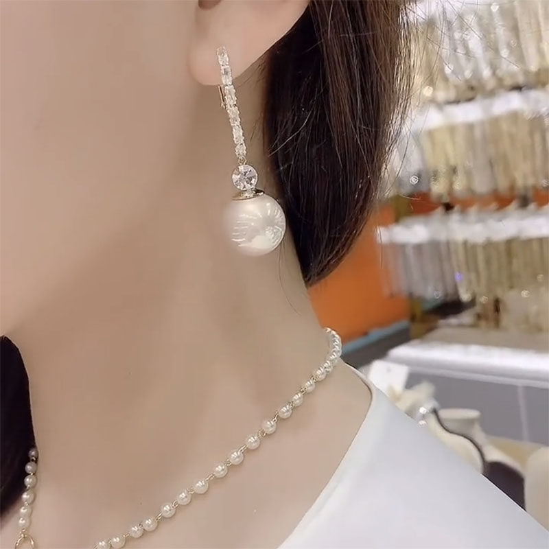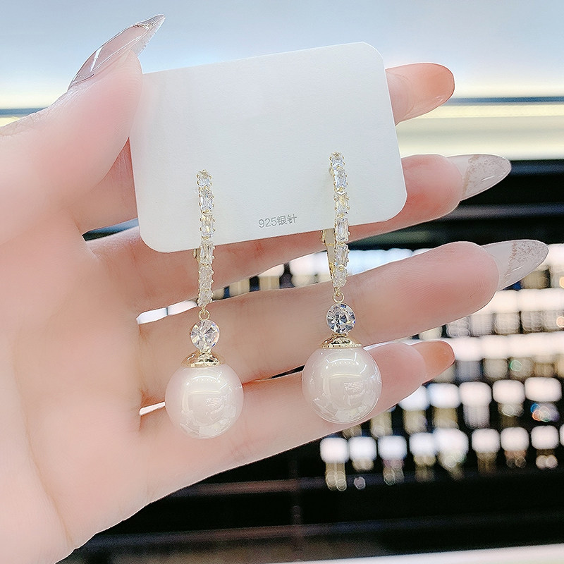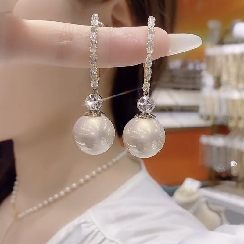 高级感大气镶钻香槟色珍珠耳环2026新款潮气质网红轻奢耳饰耳扣女