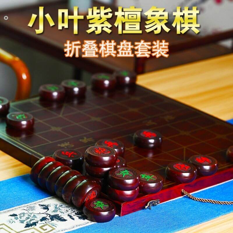 小叶紫檀象棋中国象棋实木摺叠棋盘套装高档红木特大棋盘收藏送礼