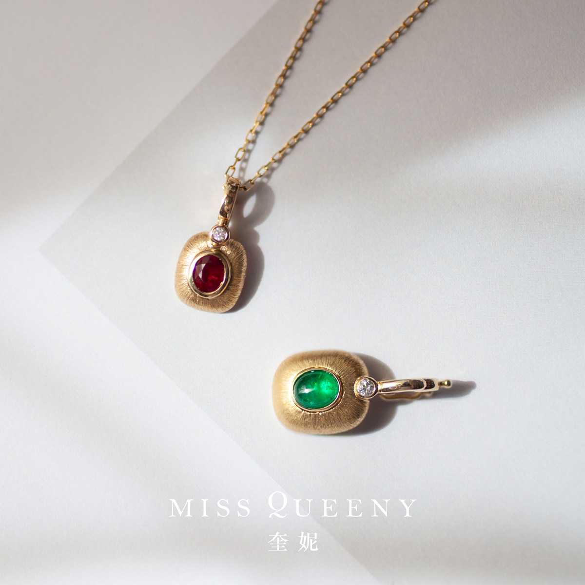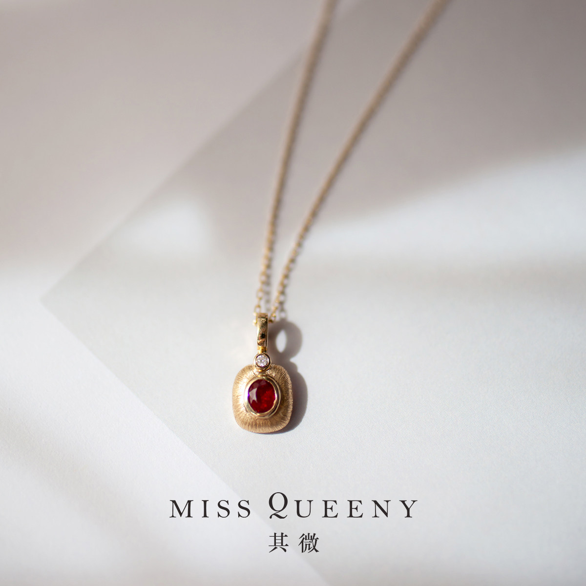 MissQueeny其微|18k金红宝石拉丝吊坠万能扣复古高级贵气
