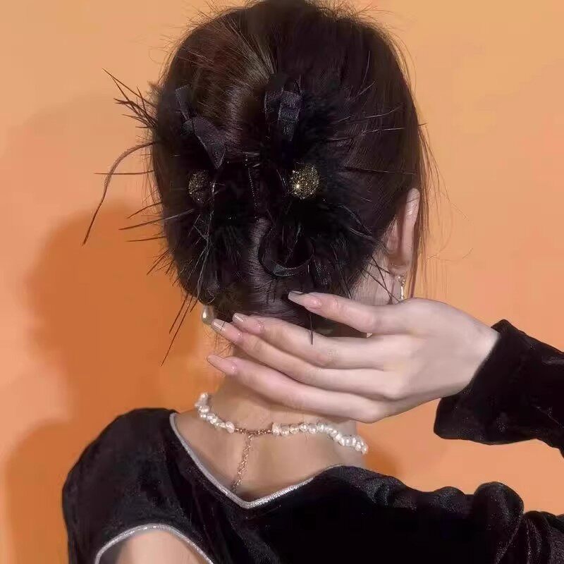 超仙~风欧根纱蝴蝶结羽毛8厘米抓夹气质时尚浪漫毛毛抓夹秋冬新款