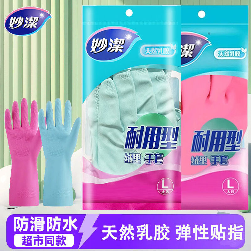 妙洁手套乳胶材质厚实耐用防滑家用厨房洗碗洗衣服官方正品实惠装