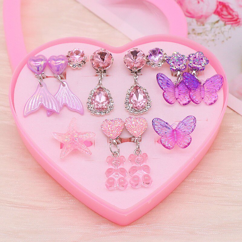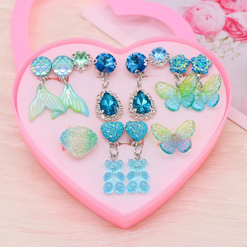 可爱新款儿童耳夹女孩无洞耳环美人鱼公主紫色耳夹贝壳鱼尾耳饰