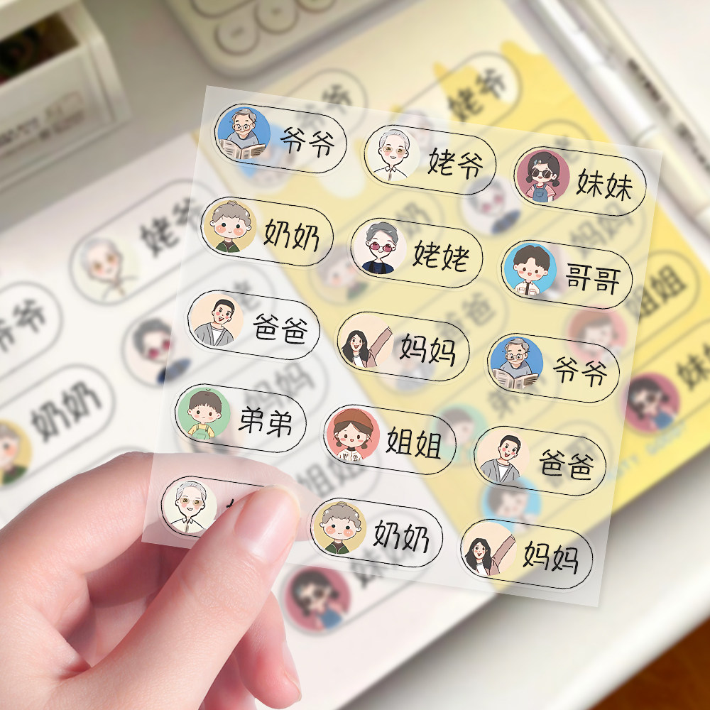 新款家庭成员标签贴纸爸爸妈妈杯子牙刷区分标diy水杯牙刷防水贴