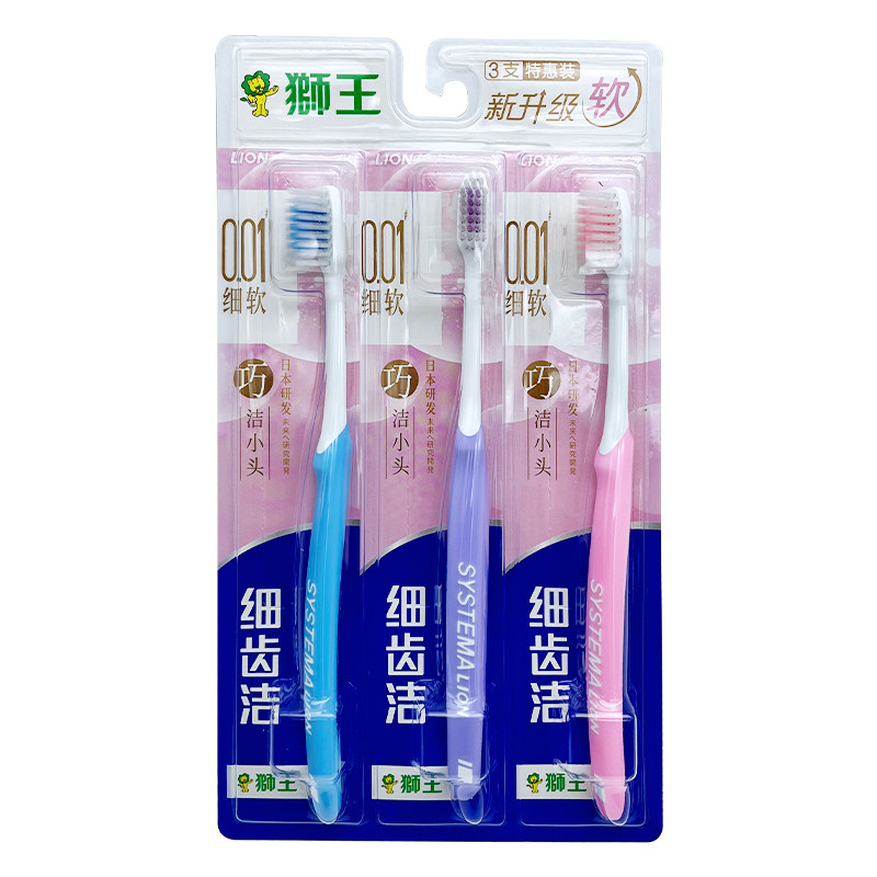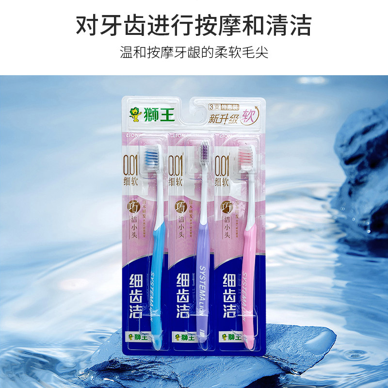 日本狮王细齿洁精巧牙刷*3支装软毛牙刷护理牙刷呵护牙龈刷头小巧
