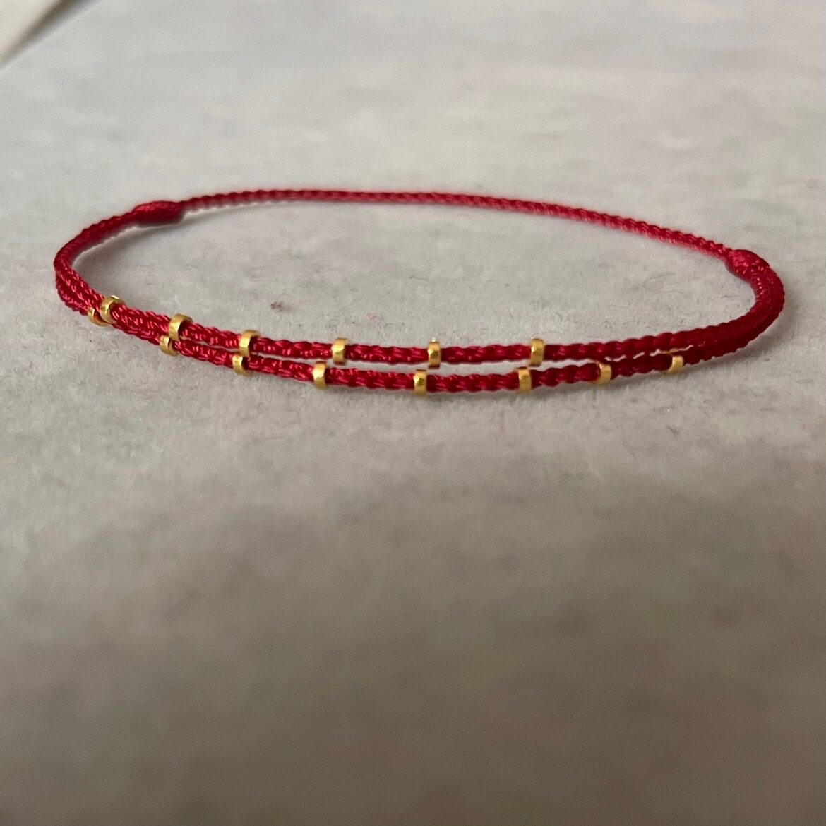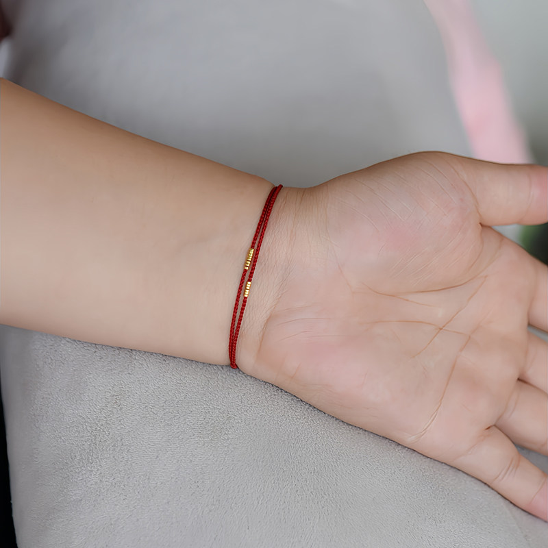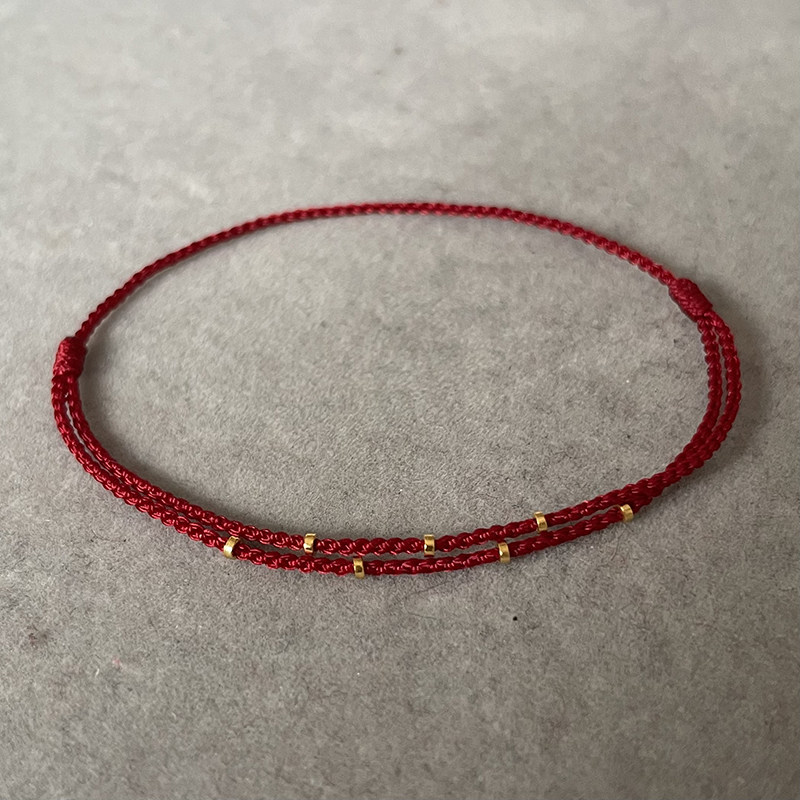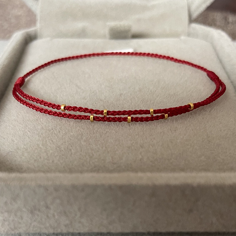 足金999隔珠转运珠本命年手工编织可调节红绳精致手链脚链带证书