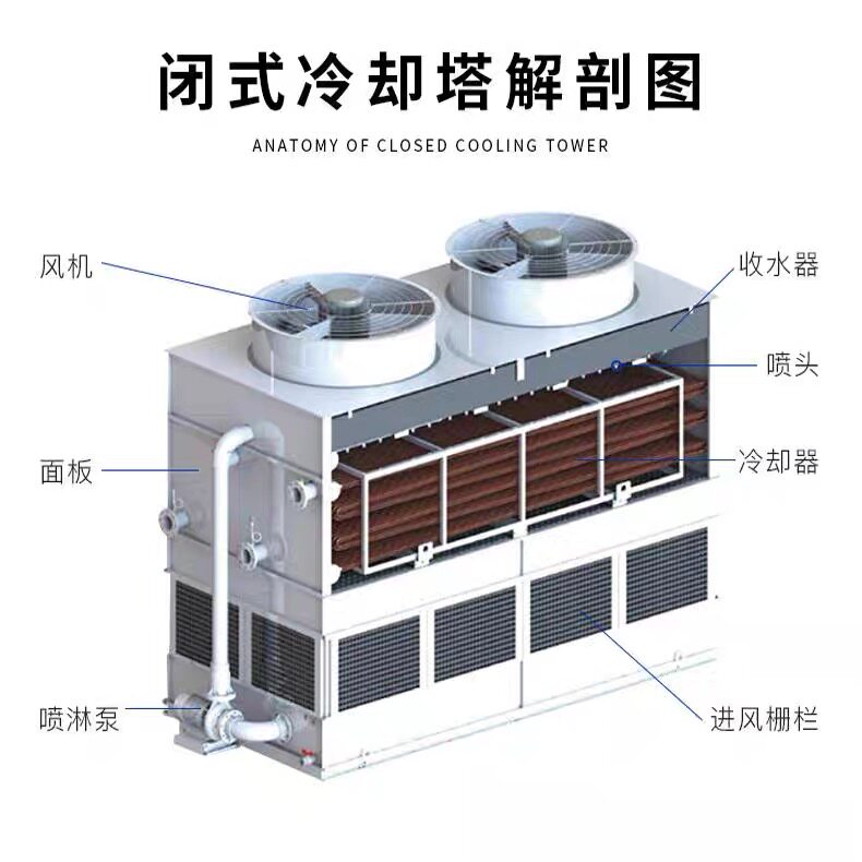 封闭式冷却塔工业不锈钢闭式水塔注塑机空压机专用密闭冷却塔200T