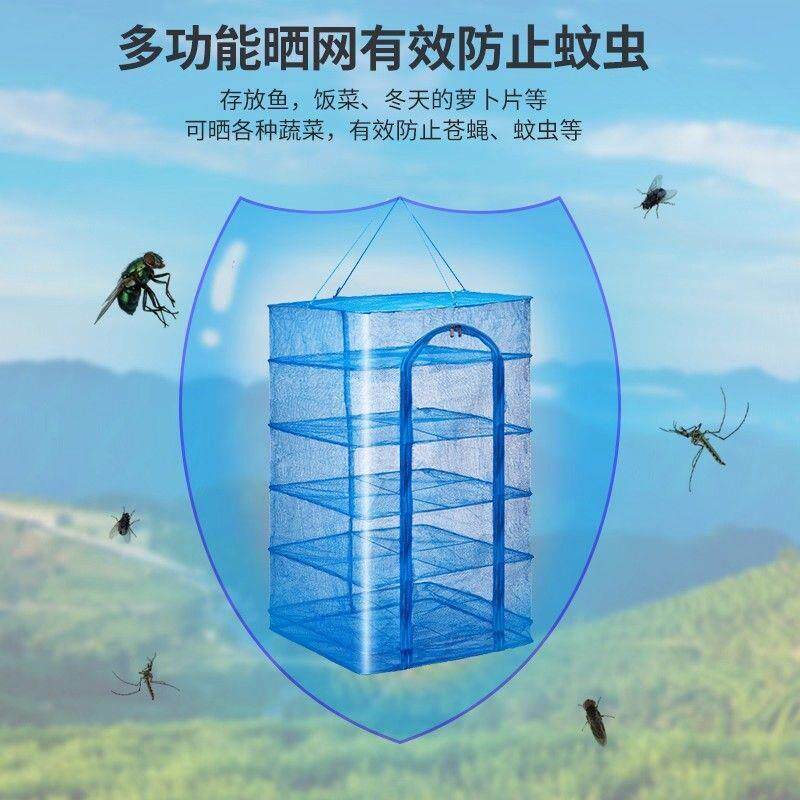 Foldable fish drying net and fly-proof cage, suitable for dr