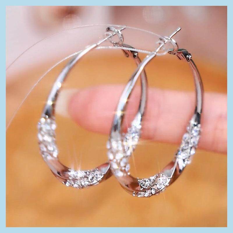 9999正品925银针耳环女港风镶钻大圈圈耳钉2025新款爆款纯银气质
